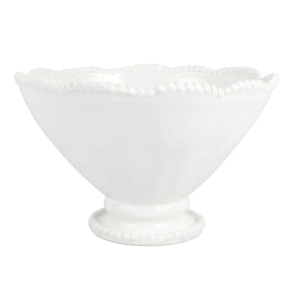 Inspired by Italian lifestyle, history, and culture, VIETRI uses the highest-quality clays from the soil of Italy’s countryside to produce beautiful, everyday items for your home. Hand-painted details, quality glazes, and fine craftsmanship help you savor the moments spent at your table and the company of those who join it. Characterized by a strand of pearl-like designs around the rim, the Perline Short Footed Cachepot is at once sophisticated and polished. We love it as a gorgeous backdrop for planted flower arrangements.