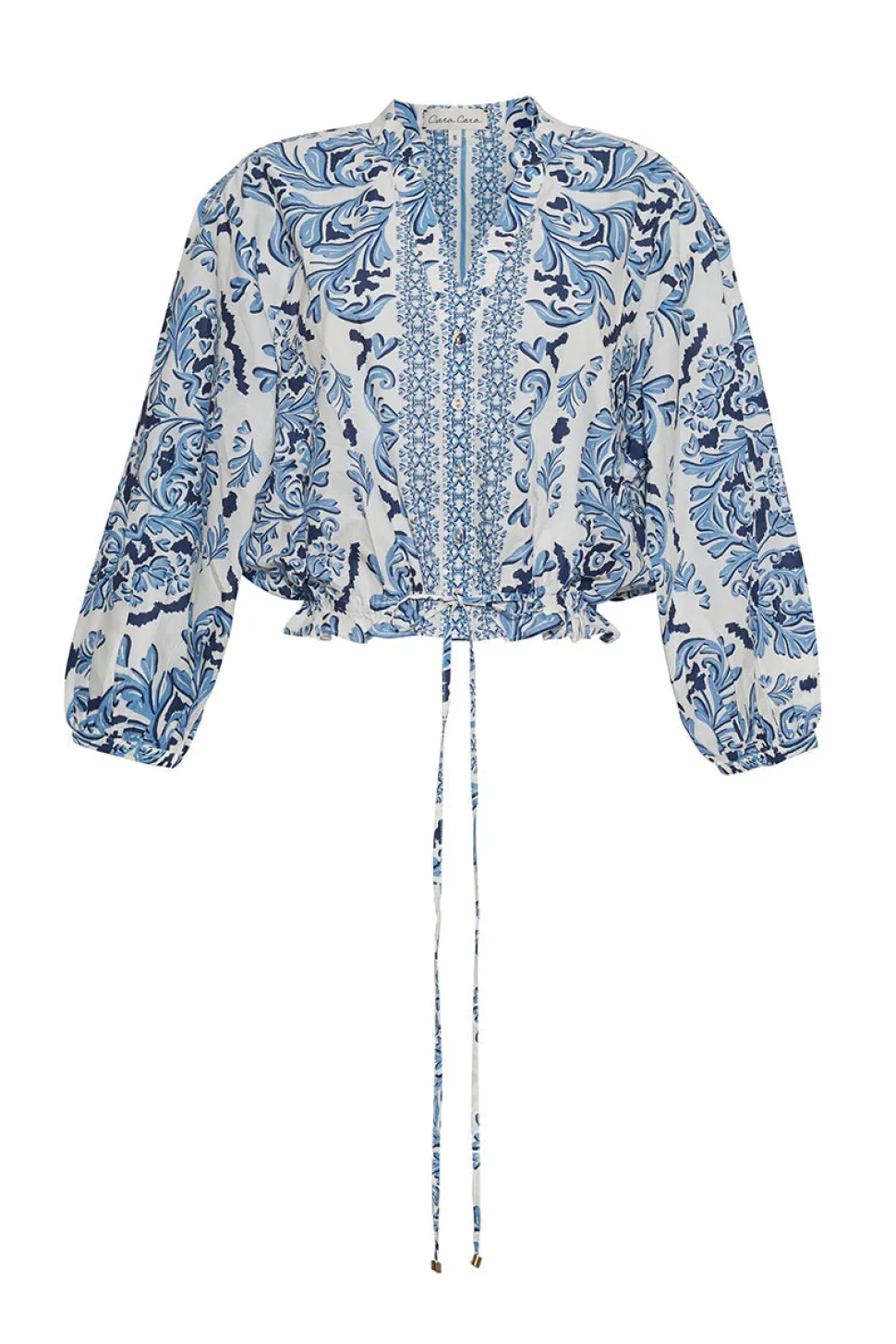 Founded by three New York City-based mothers who met through their kids, Cara Cara’s hallmarks include crisp poplin, house-designed prints, and casual glamour. The inspiration for their ethical womenswear comes from interior design, as well as the world’s most exotic locales. The Perrin Top in Saltaire Light Blue offers an airy, carefree silhouette with a polished finish. Crafted in lightweight cotton voile, its relaxed shape cinches at the hem with drawstring ties, creating subtle volume and soft structure. Pair it with the matching Melanie Skirt for a breezy, coordinated look that’s effortlessly chic.