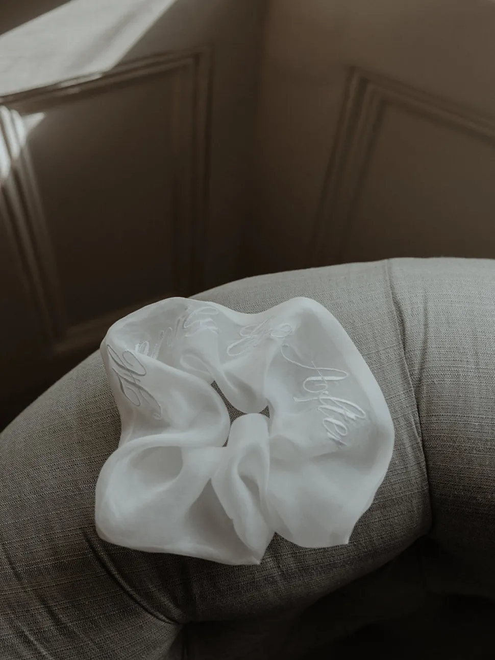 Built on the bonds of sisterhood, Gigi & Olive offers thoughtfully curated collections for brides-to-be from Georgie Le Roux and her sister Olivia. Offering everything from personalized hats to table linens, with a gorgeous embroidery service, the brand’s veils, hair bows, scrunchies, handkerchiefs and garters are at original, fashionable, and aspirational. For someone looking for a veil or bow alternative, the Personalized Organza Scrunchie is delicate, light, and oversized. Add a name, phrase, or date to make it extra special.