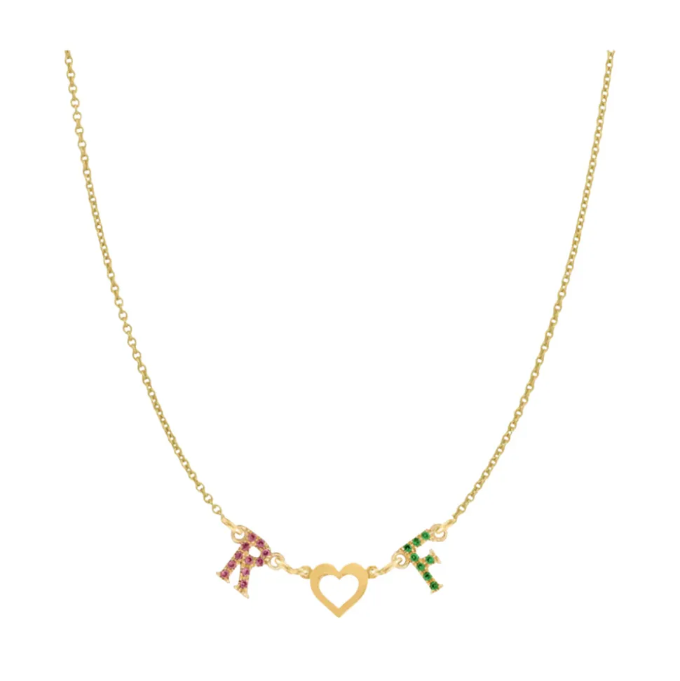 Timeless cool and ethical sourcing are at the heart of London-based Roxanne First’s fine jewelry studio. Solid gold, beautiful beads, and hand-picked diamonds come alive in her vibrant, fun-loving collections that find the meeting place of whimsy and contemporary luxury. Pick from an array of 12 colorful, sparkly letters to adorn a solid gold chain.