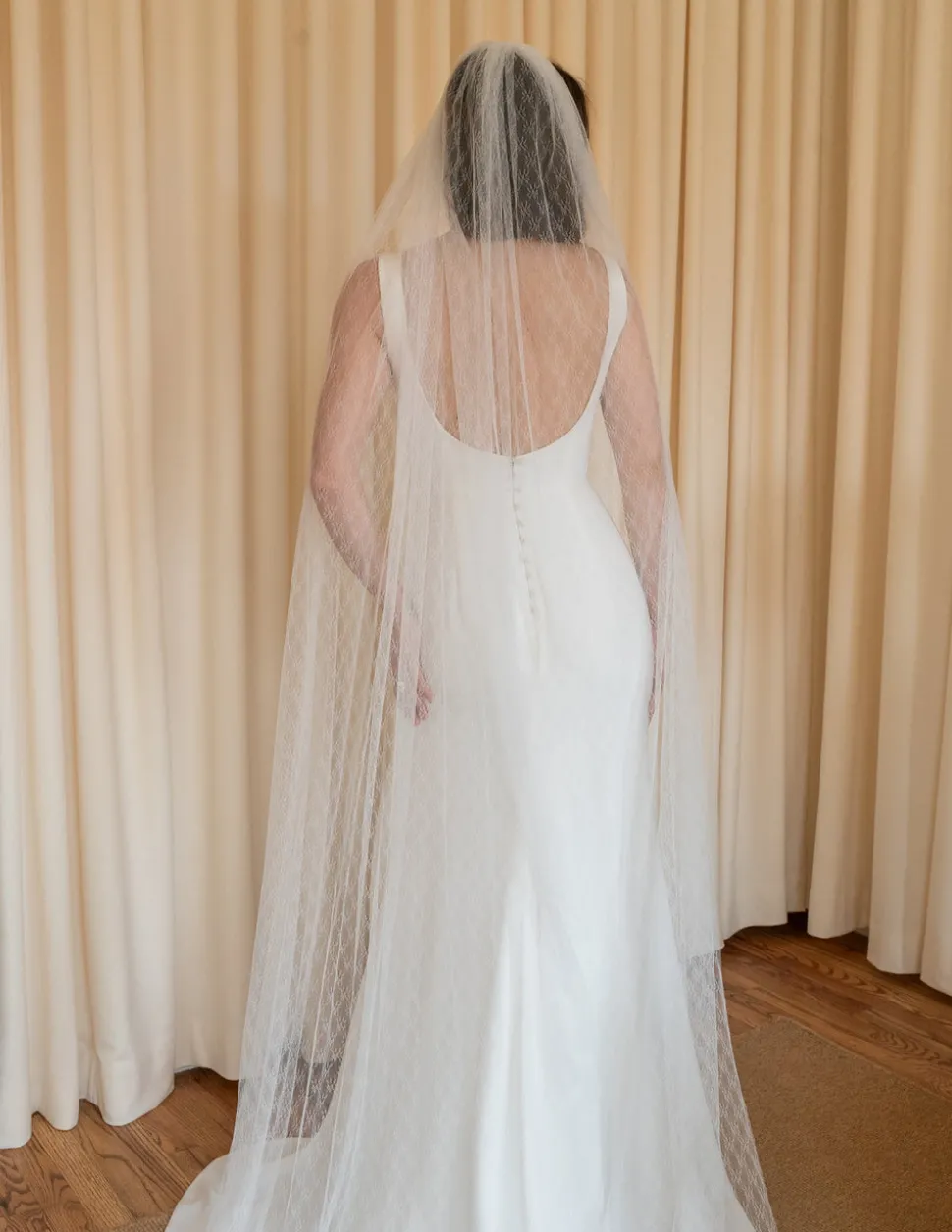 Famed for their comfort and wearability, Alexandra Grecco’s gowns and accessories find the balance between what is stylish and what is timeless. Handmade in New York’s garment district, these pieces embrace refinement and luxury from their graceful silhouettes to each immaculate detail. Elegant and subtle, the Petit Floral Lace Veil is a modern option for a bride that wants a classic accessory with a little detail.