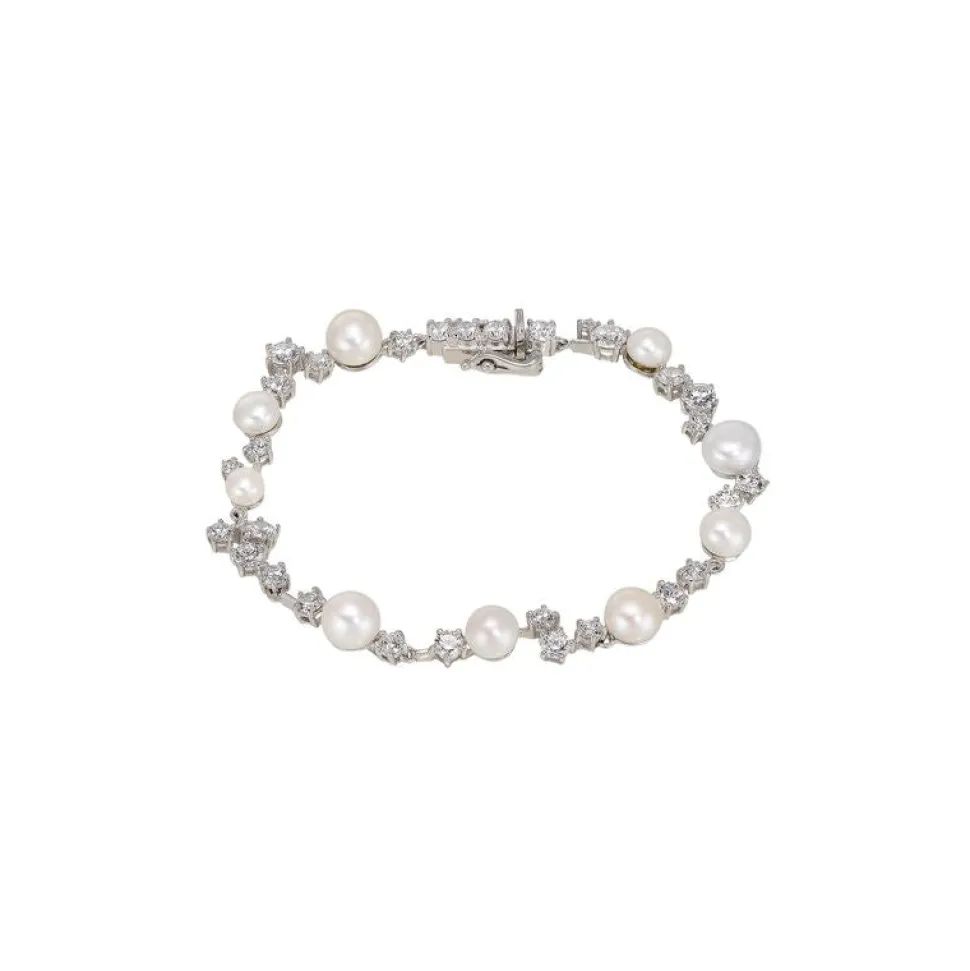 Metals: 18K white gold and rhodium vermeil. Simulated gemstones: White diamonds (carats): 3.1. Cultured gemstones: Freshwater pearls Handcrafted in the United Kingdom.