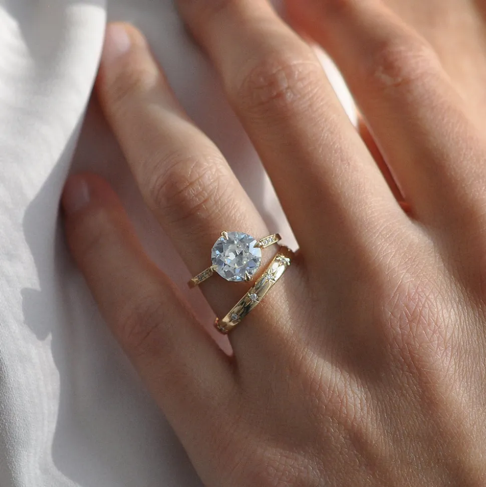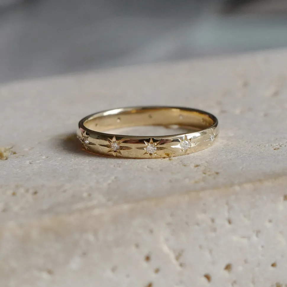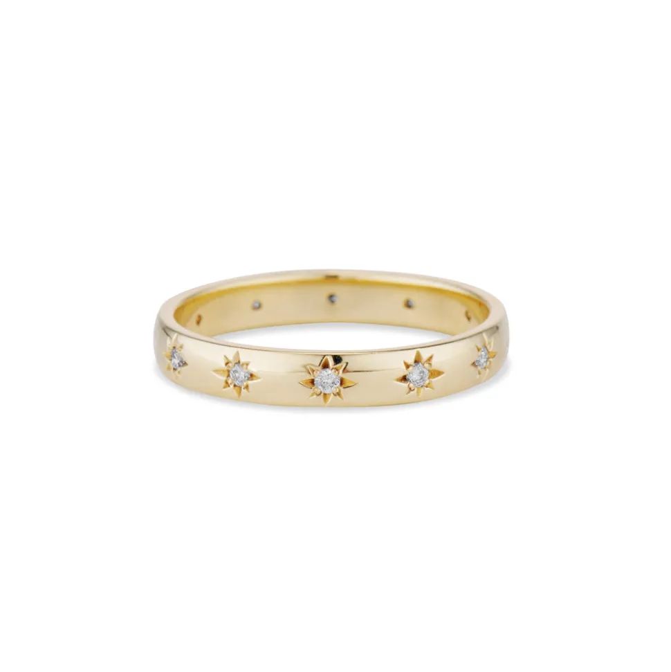 From her studio in New York City, Ashley Zhang designs one-of-a-kind fine jewelry that will last a lifetime. Rounded with hand-carved star diamond settings, the Petite Star Eternity Band makes a gorgeous wedding or stacking band. Engraving available.