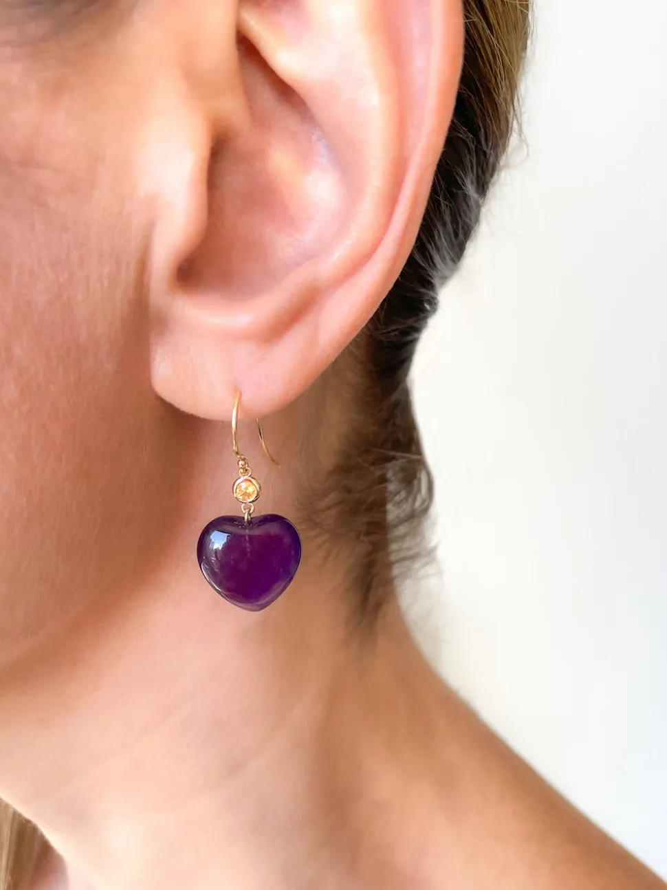 14k yellow gold. Amethyst. Yellow sapphire. Fish hooks. Made in New York City.