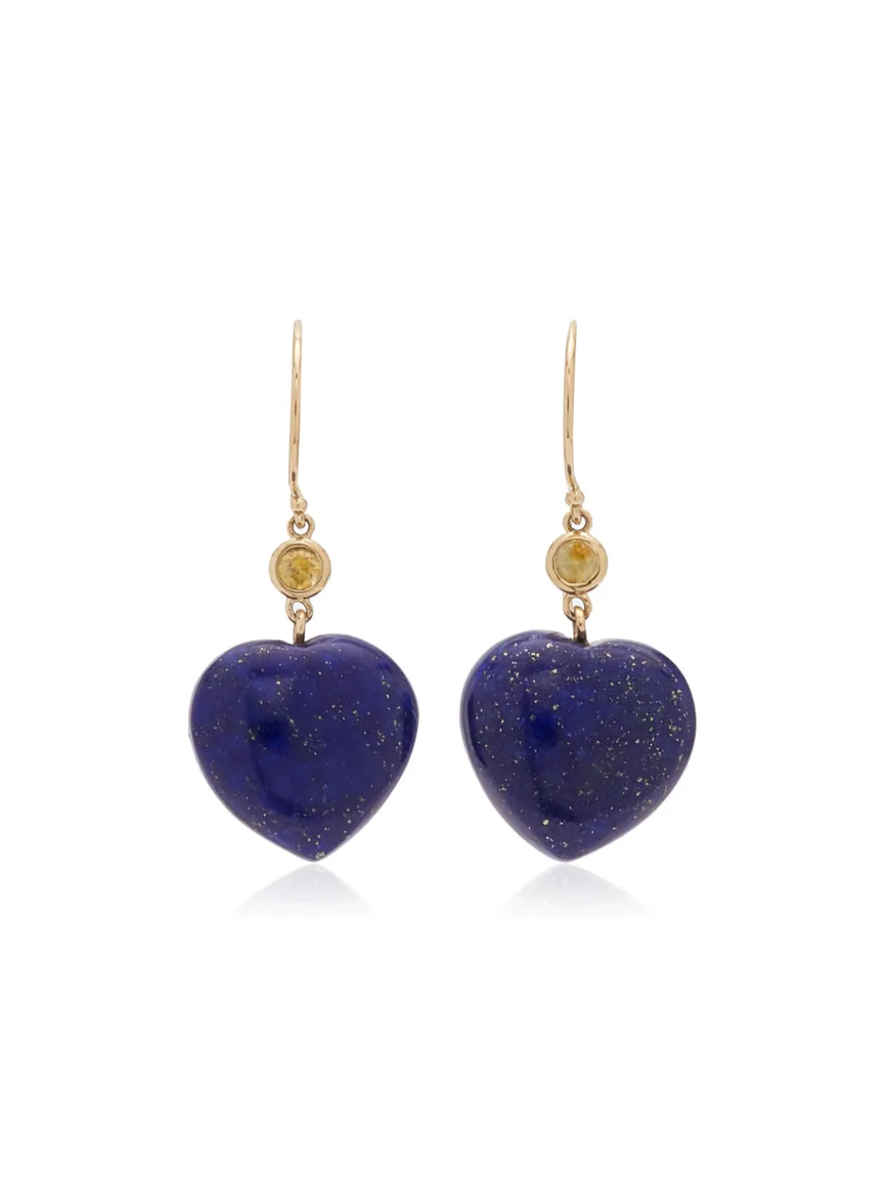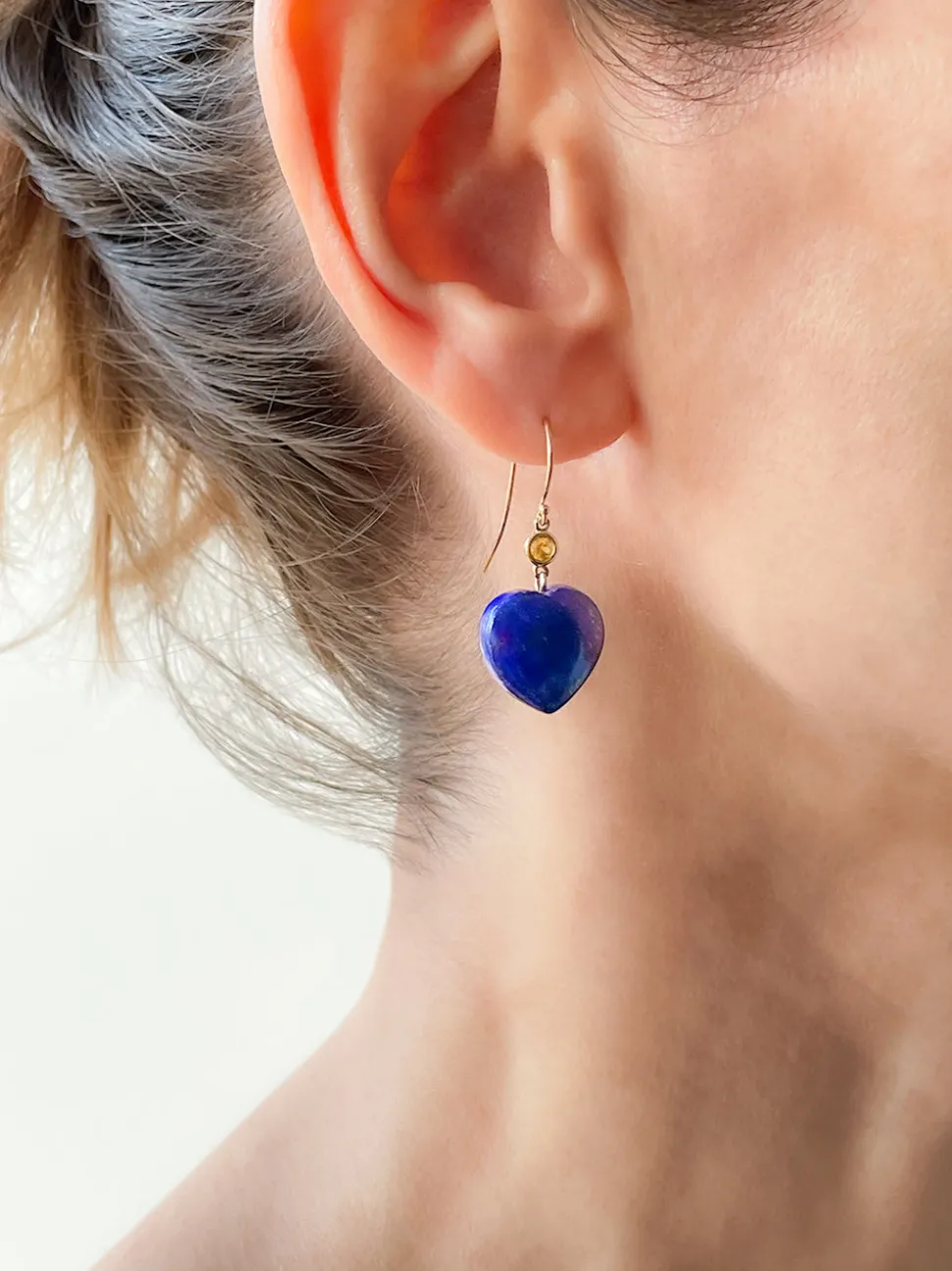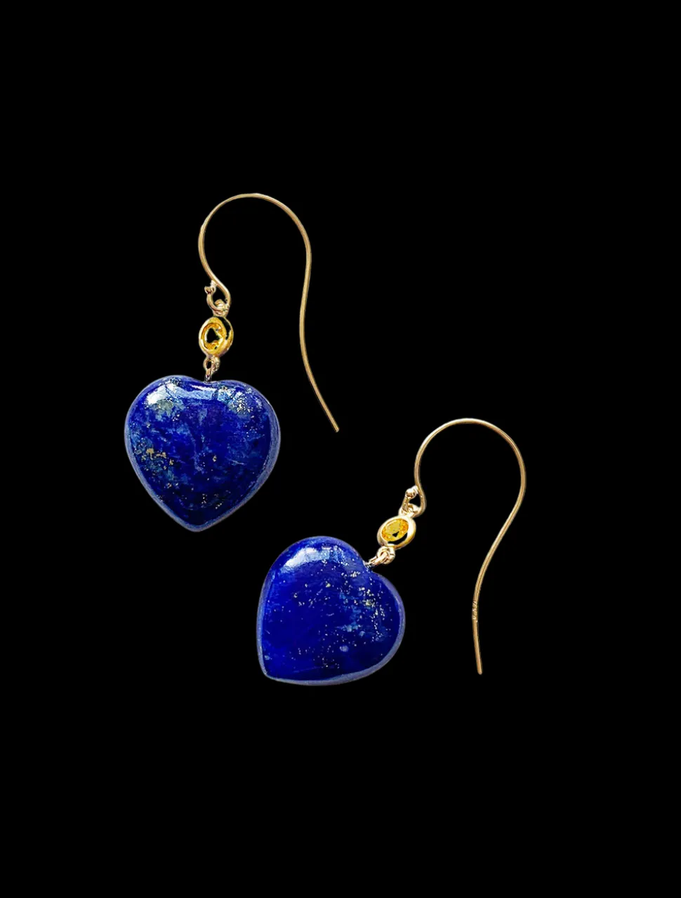 Having lived in Morocco, Jakarta, and Paris, New York designer Yasmina Benazzou brings international finesse to Haute Victoire. Working with antique and vintage pieces, these one-of-a-kind, ethical pieces are the product of a world of experience. Celebrate love and beauty with the heartfelt Petits Coeurs Lapis Lazuli & Sapphire Gold Earrings. Each individual gem is uniquely beautiful.