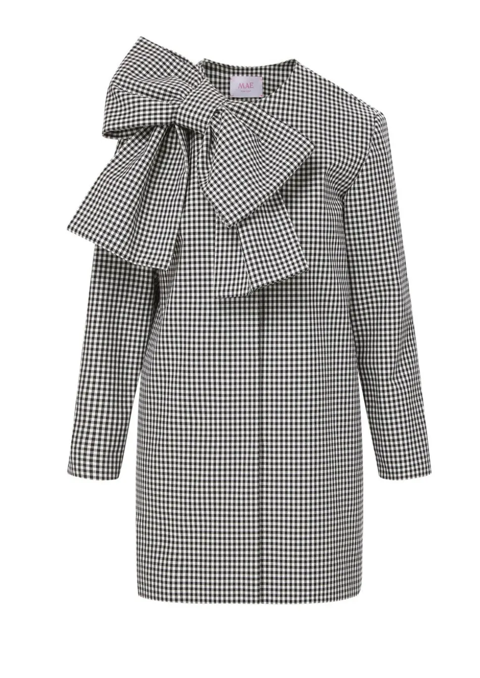 MAE New York seeks to revitalize New York’s historical garment district by creating small-batch and made-to-order collections—modern interpretations of 1960s glamor—highlighting tailoring, luxury materials, and craftsmanship. Crafted from an Italian cotton gingham jacquard, sourced in Biella, Italy, the Phoebe Coat In Gingham Jacquard is cut in a cocoon shaped silhouette with full length sleeve. We love the oversized bow (which is not removable) at the right shoulder.