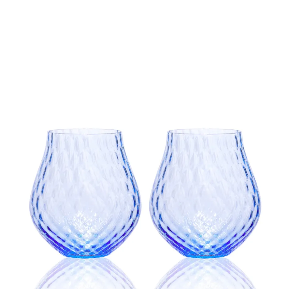 Caskata makes dinnerware for those who love to entertain. That joie de vivre and celebratory atmosphere makes its way into each piece of the brand’s blend of classic and contemporary designs, recognizable by their creative patterns, enduring quality, and light touch. The Phoebe collection is for non-traditionalists, those who enjoy an eye-catching pattern and dramatic curves. The Phoebe Cobalt Stemless Wine Glasses, Set of 2, feature a wide base, tapered mouth and tulip shape. An ideal vessel for your favorite vintage, or even just a cool glass of water.