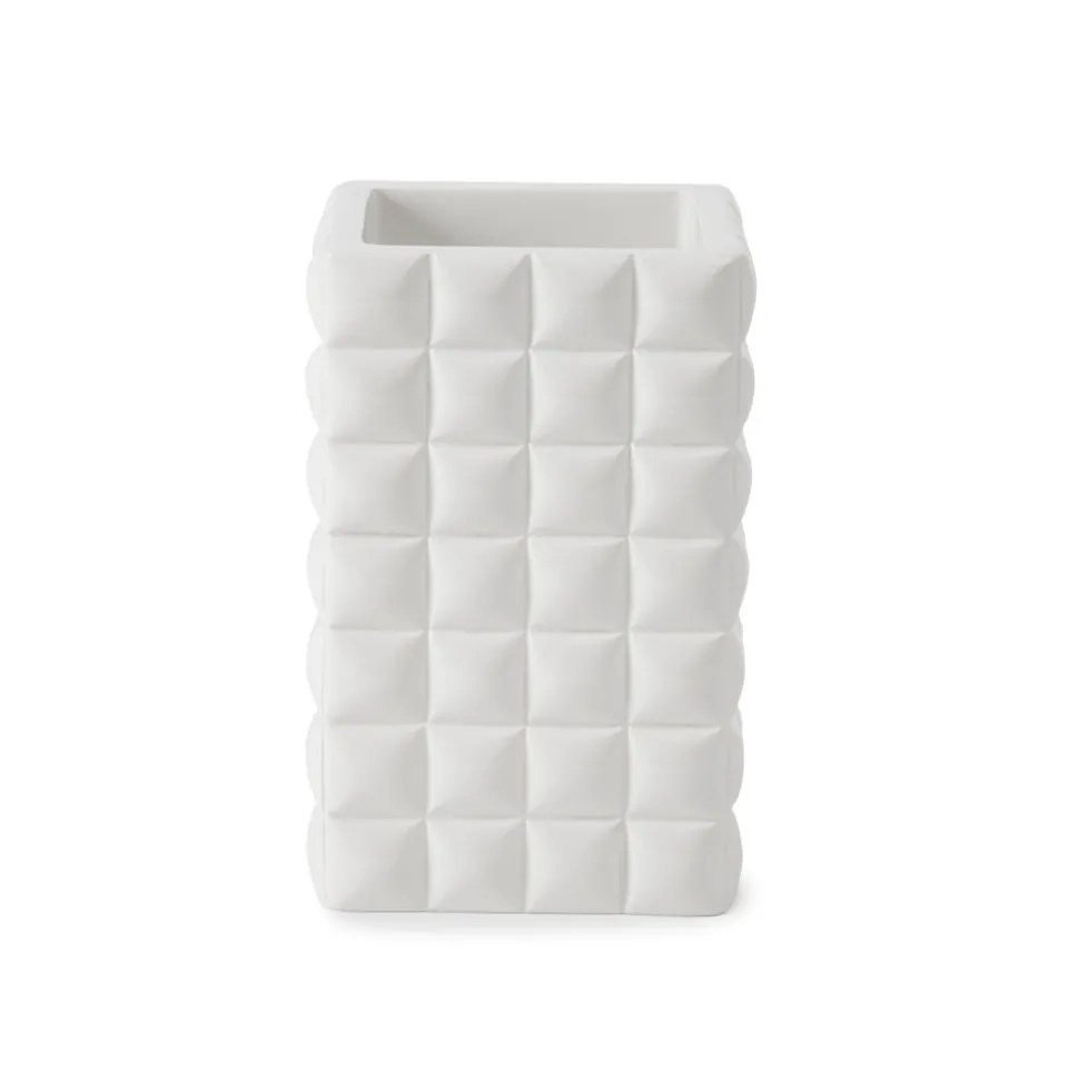 Based in New York’s Garment District, Kassatex’s linens bring more than just a sense of luxury into the modern home. Founded with old world values and a contemporary sensibility, their towels, sheets, and home goods bring the very best of Manhattan living, with texture, comfort and style. Crafted in a cube design with an all-over gloss, the Piazza collection adds refinement with some lavish touches. The Piazza Tumbler in White is an elegant conduit for mouthwash or water, or to keep taller items, like toothbrushes.