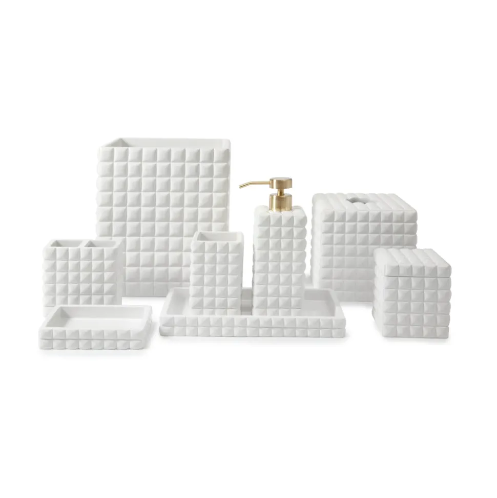 Based in New York’s Garment District, Kassatex’s linens bring more than just a sense of luxury into the modern home. Founded with old world values and a contemporary sensibility, their towels, sheets, and home goods bring the very best of Manhattan living, with texture, comfort and style. Crafted in a cube design with an all-over gloss, the Piazza collection adds refinement with some lavish touches. The Piazza Waste Basket in White is an elegant disposal option that will look sightly in any bathroom setting.