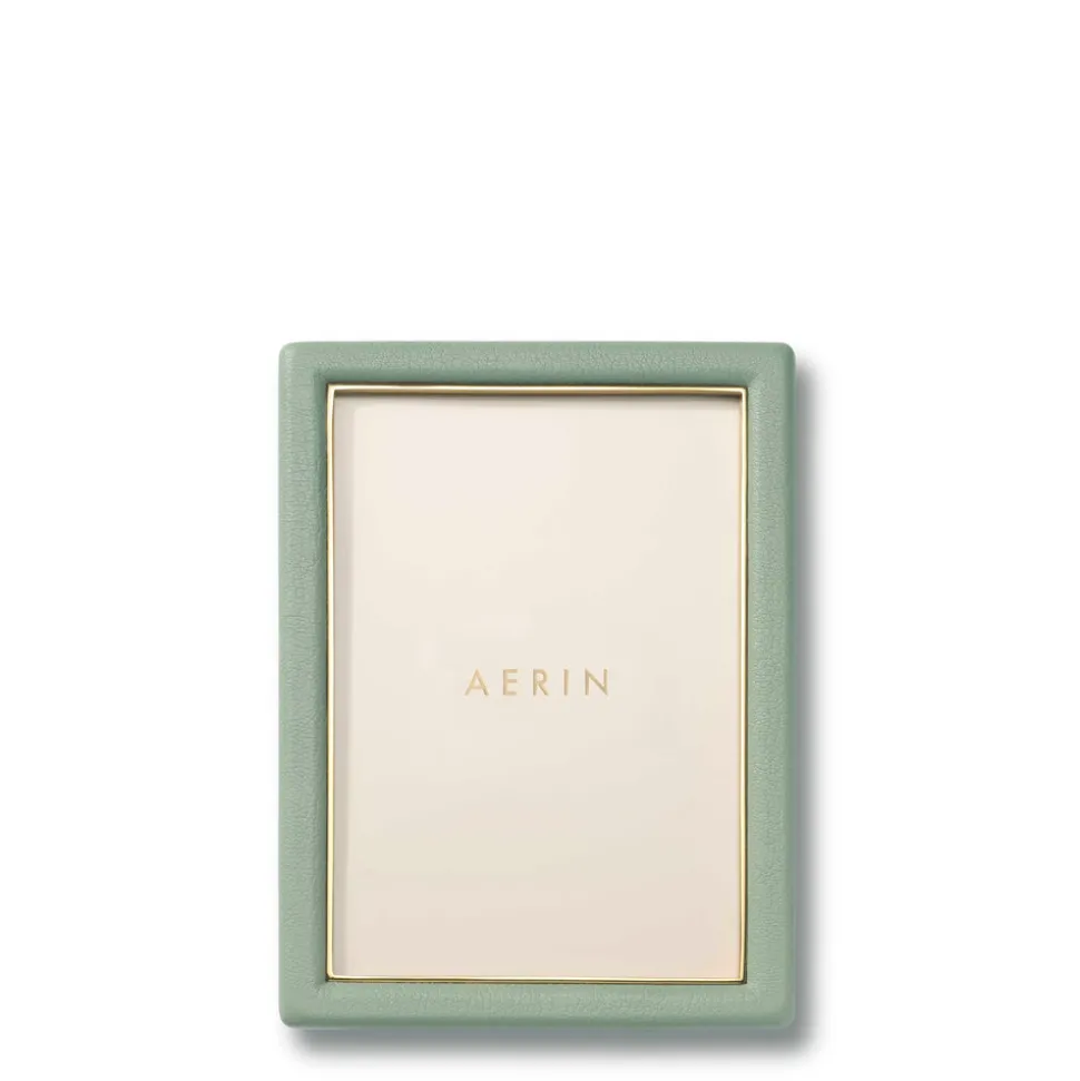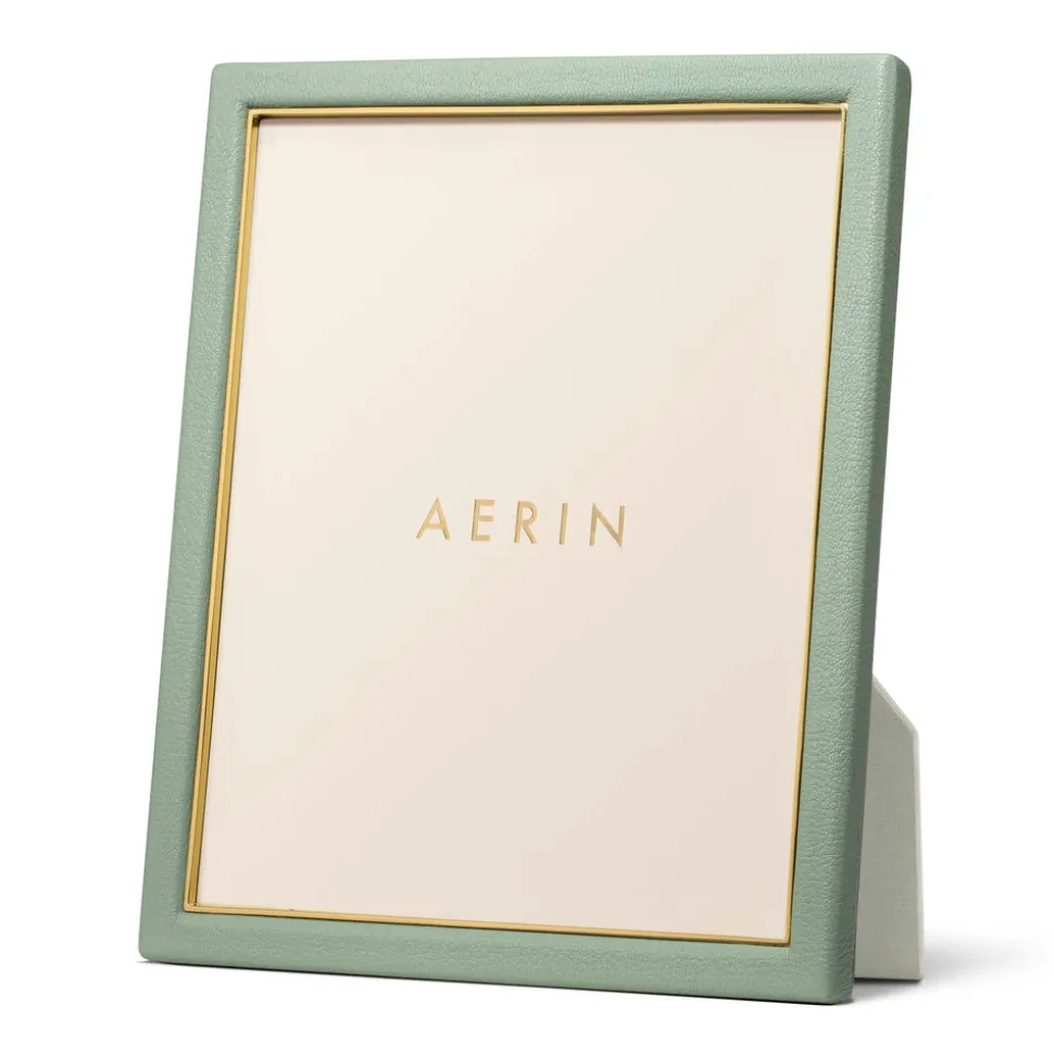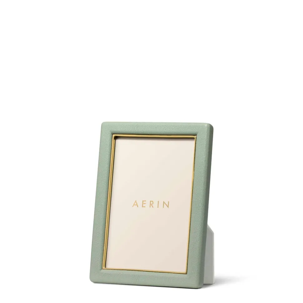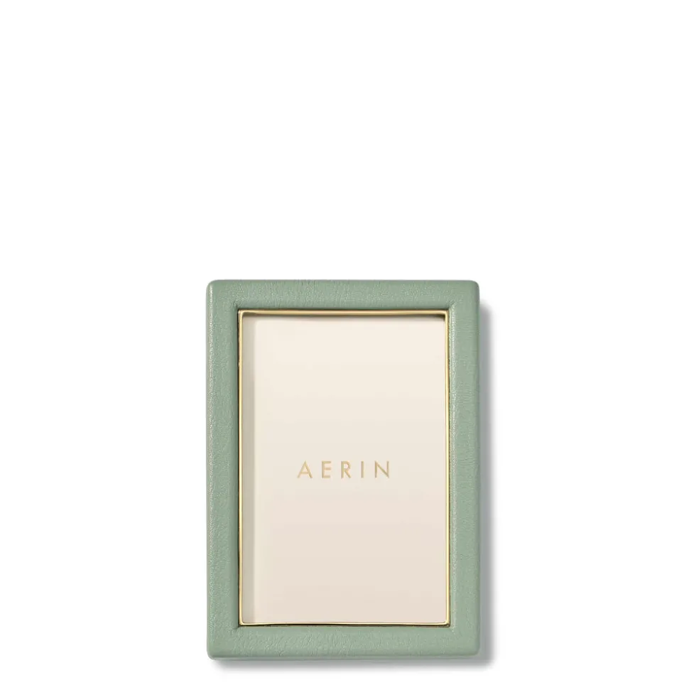 Effortless, beautiful living is what’s important to Aerin Lauder. That ease and refinement shines through in every detail of her collections of beauty products, home decor, and fashion accessories. The contemporary Piero Leather Frame in Eucalyptus combines the luxury and texture of Italian leather with the warmth of gold detailing. Ideal for gifting, it offers an elegant way to display a favorite family photo or a small piece of art.