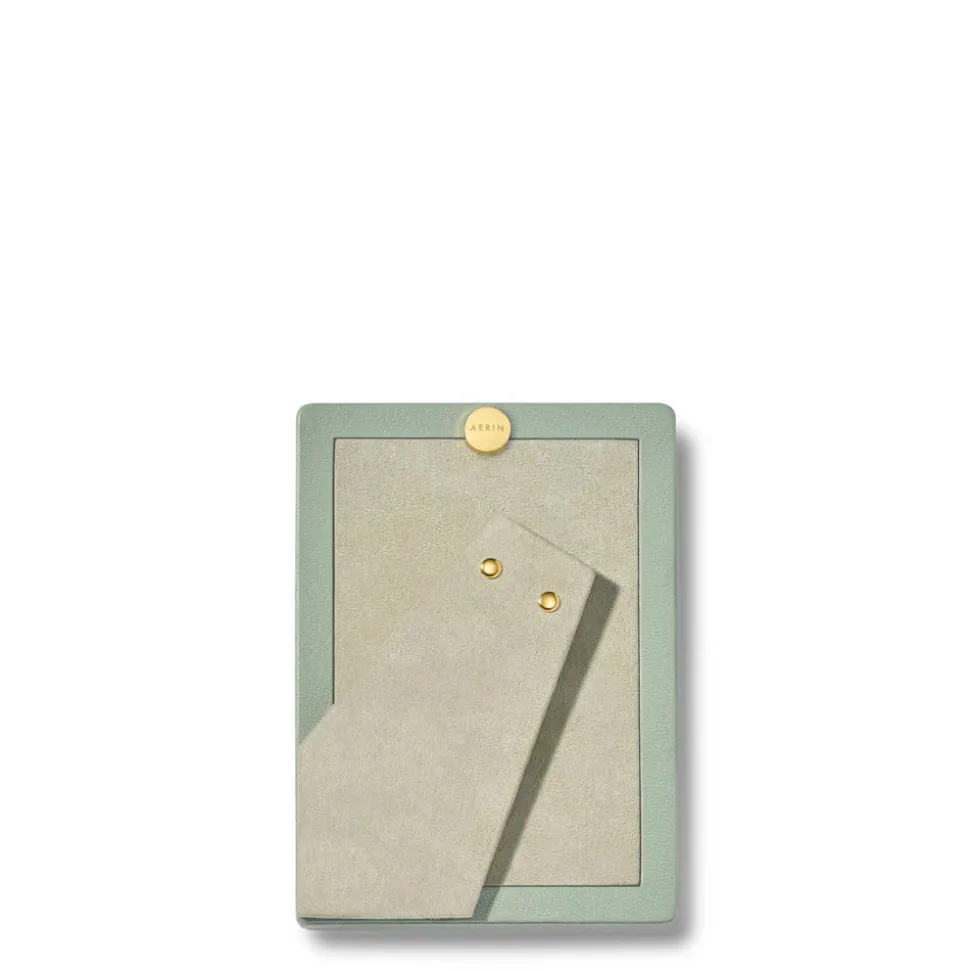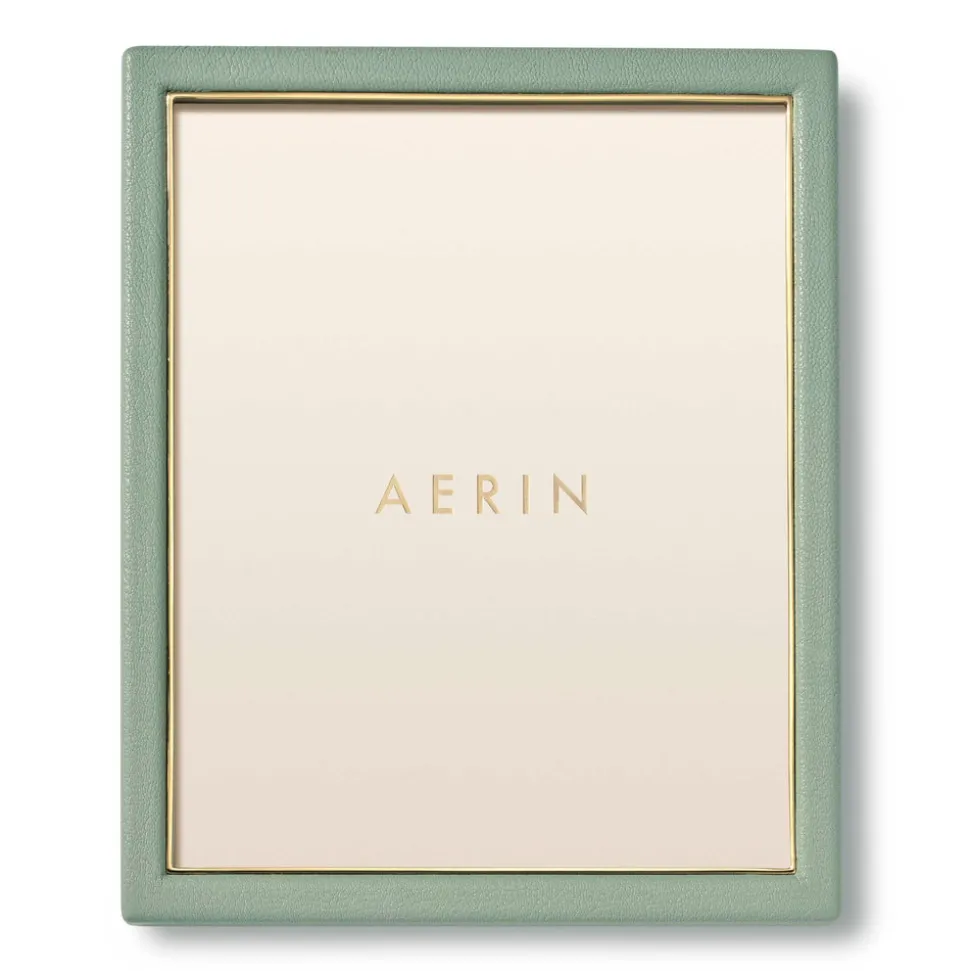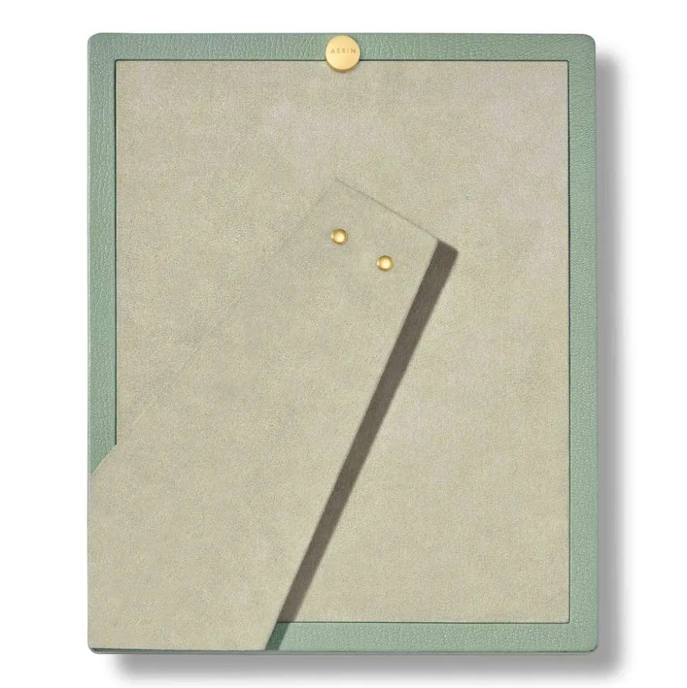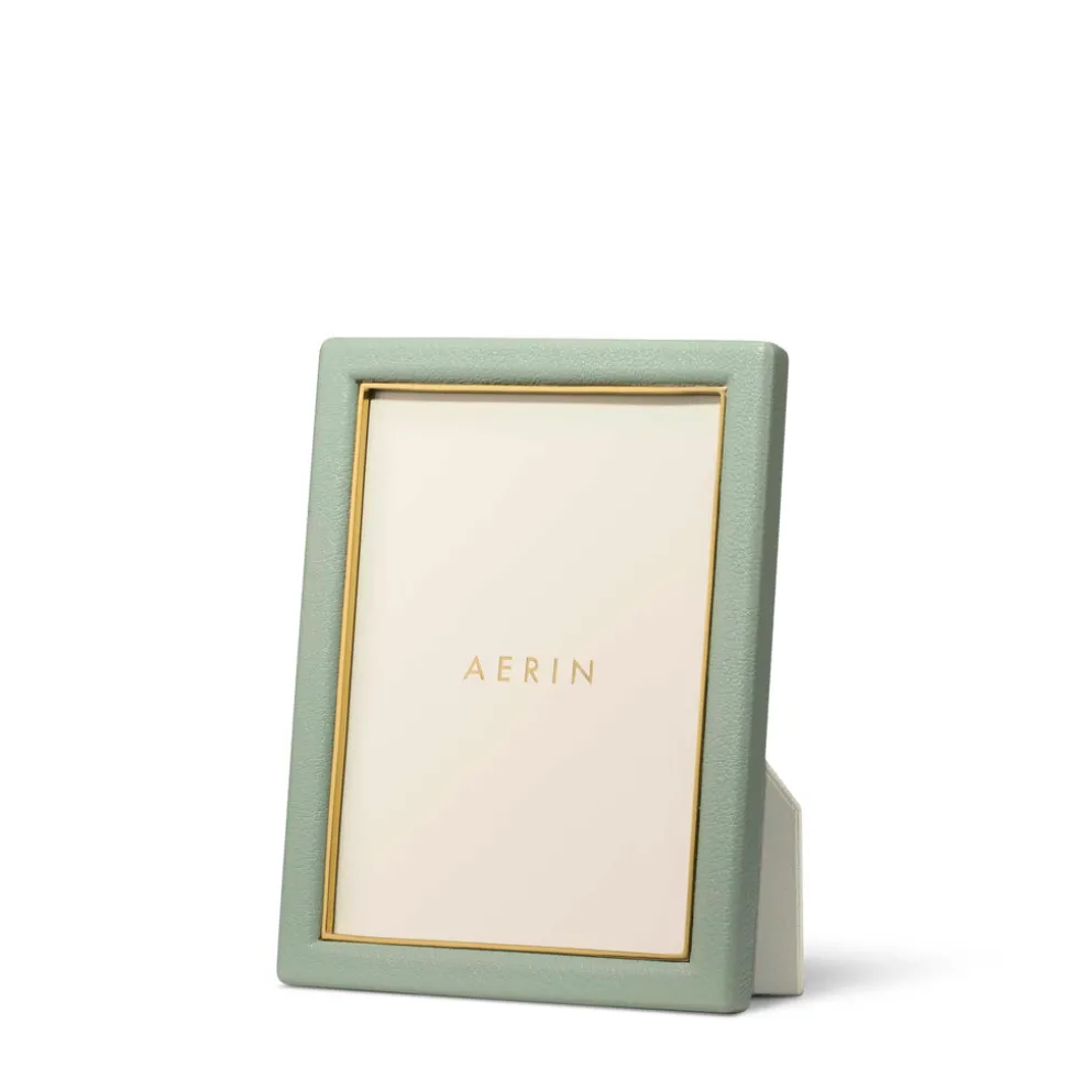 Effortless, beautiful living is what’s important to Aerin Lauder. That ease and refinement shines through in every detail of her collections of beauty products, home decor, and fashion accessories. The contemporary Piero Leather Frame in Eucalyptus combines the luxury and texture of Italian leather with the warmth of gold detailing. Ideal for gifting, it offers an elegant way to display a favorite family photo or a small piece of art.