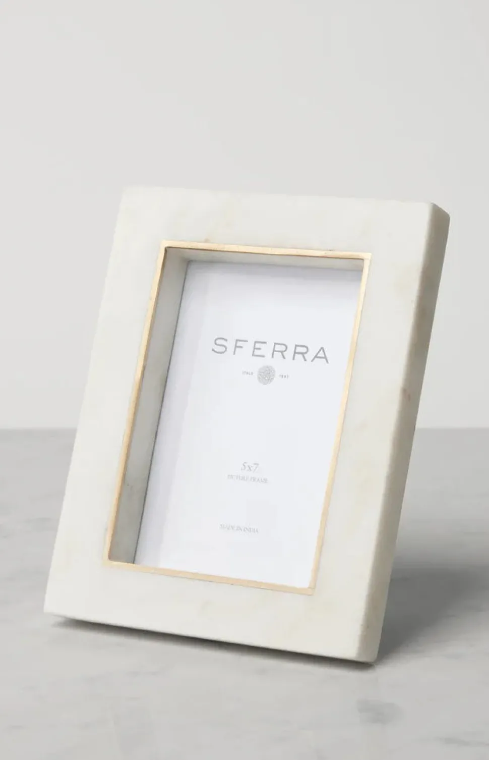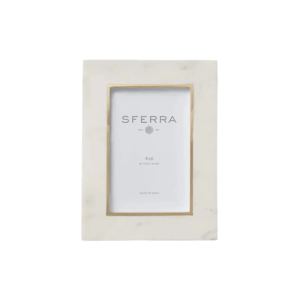 Renowned for their signature Italian craftsmanship, Sferra linens are famous for their quality, and lauded for their elegance, the world over. An artful extension of the beloved Pietra collection, the Pietra Frame in White & Gold is crafted from hand-selected marble by skilled artisans. Golden brass accents lend a refined finish to its minimalist design, offering a sophisticated way to display treasured photographs.