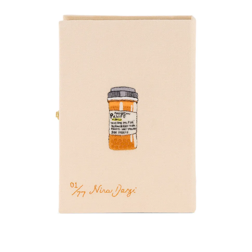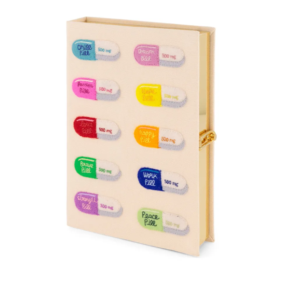 Founded by Gregory Bernard and Olympia Le-Tan in 2009, the brand re-imagines classic book covers and art, transforming them into coveted artisanal clutches and accessories. Immaculately crafted and worn by celebs the globe over—from Natalie Portman to Princess Olympia of Greece—the book clutch is more than just a status symbol it’s a totem to taste, literature, art, and knowledge. The Pills Book Clutch features a colorful array of various metaphorical medication.