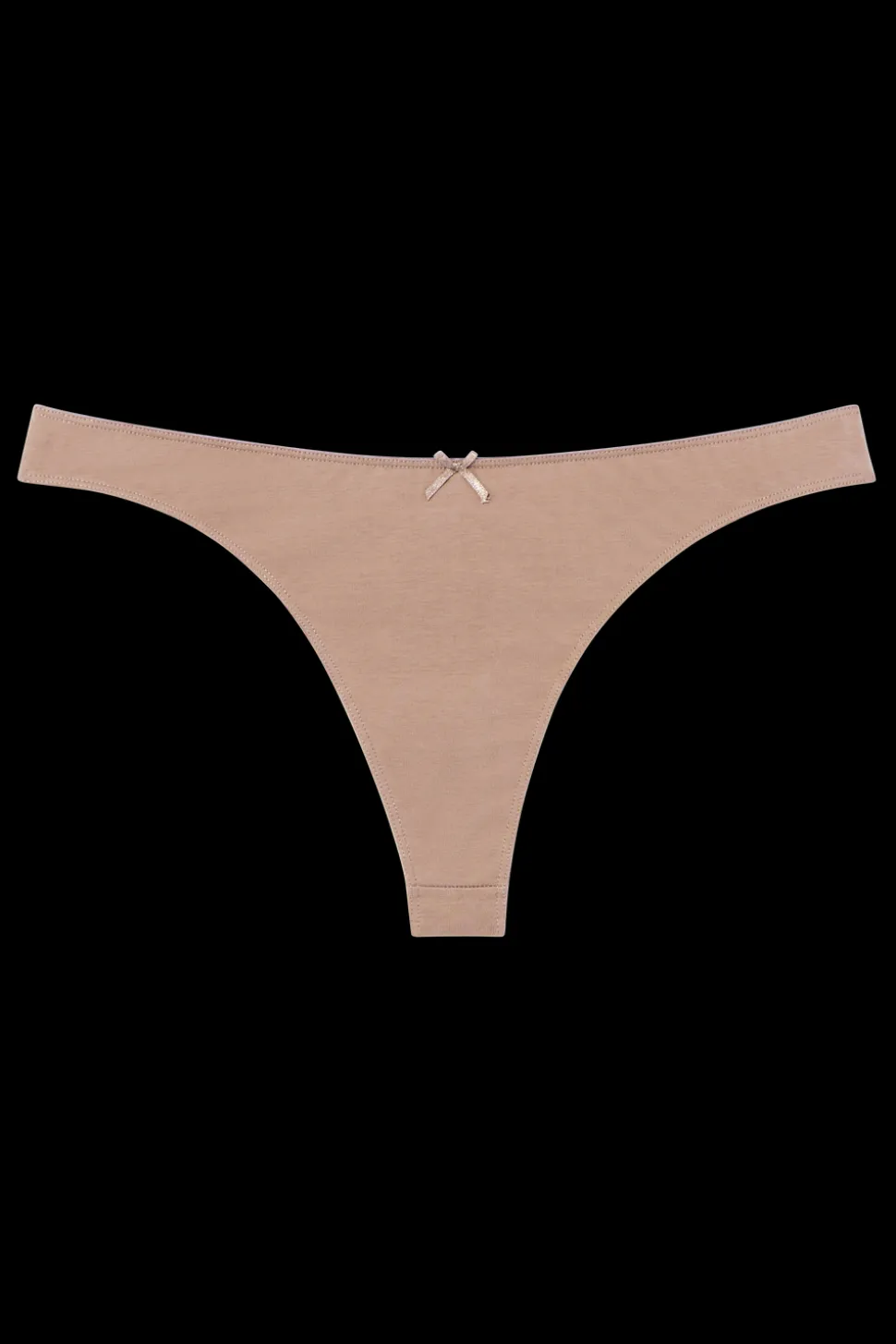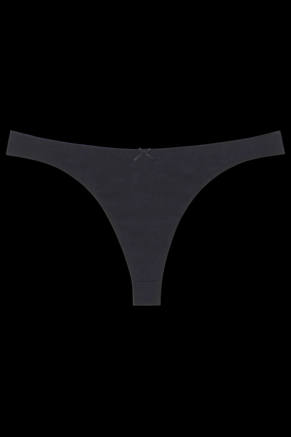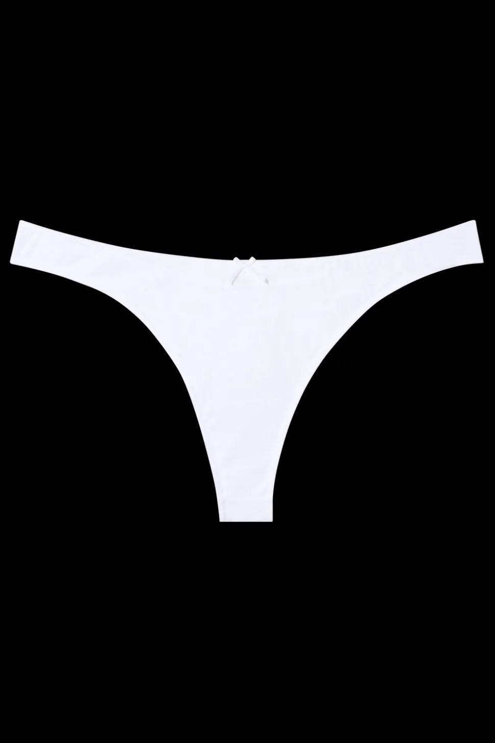 47% pima cotton, 46% cotton, 7% spandex. Low rise thong. Bow at center front.