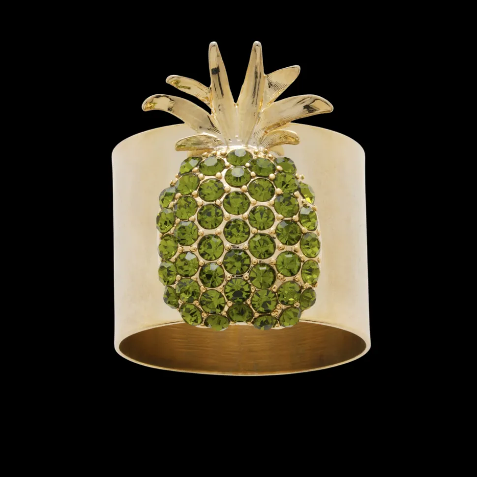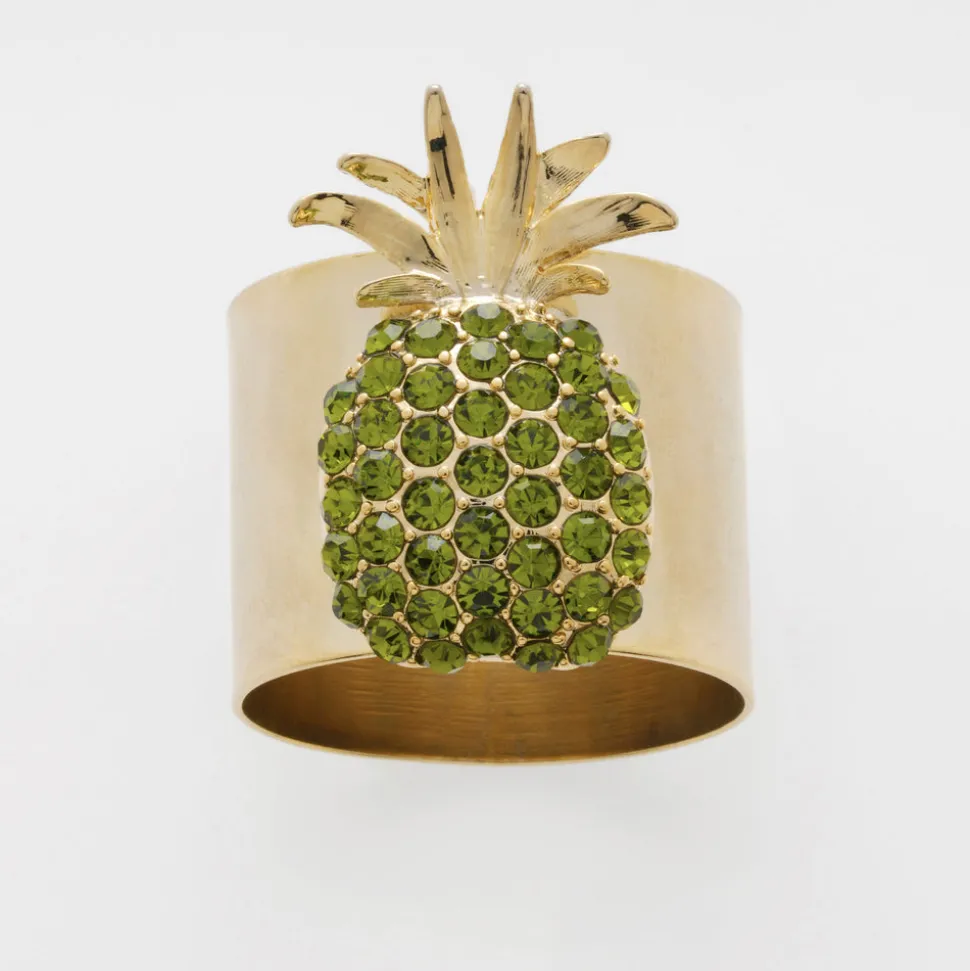 Inspired by her mother’s flair for holiday decorating, Joanna Buchanan has turned her love of travel and knowledge gleaned from twenty years in fashion retail into an eclectic line of tabletop, barware, gifts, and decor. Boasting sparkling crystals, the Pineapple Napkin Rings in Olive, Set of Two welcomes your guests to the table. Each one is sure to be a conversation starter before the first course is even served.
