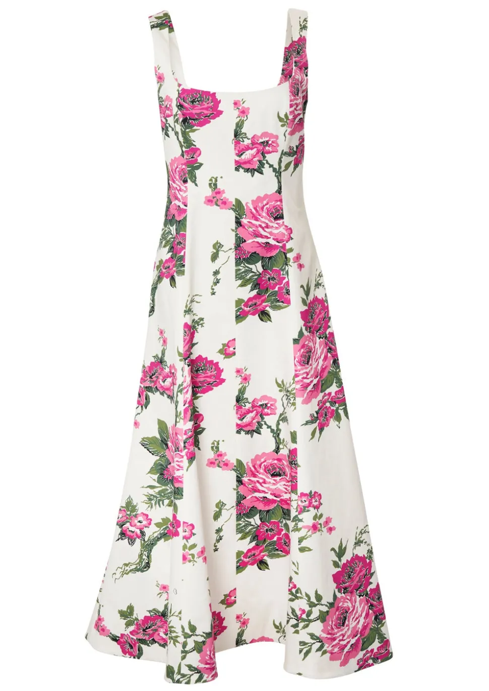 Since 1981, Venezuelan-born Carolina Herrera’s line has been defined by its founder’s iconic style and effortless sophistication. Under Creative Director Wes Gordon, Carolina Herrera continues to cater to a new generation of glamorous women. With the Resort 2024 collection, the brand offers designs that are made for destination weddings, honeymoons, and best-dressed guests. The Floral Printed Cotton Square Neck Midi Dress boasts a timeless fit-to-flare silhouette elevated with a square neckline to accentuates the bust. Its all-over florals further enliven this delightfully bright look.