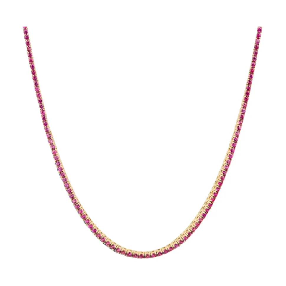 Timeless cool and ethical sourcing are at the heart of London-based Roxanne First’s fine jewelry studio. Solid gold, beautiful beads, and hand-picked diamonds come alive in her vibrant, fun-loving collections that find the meeting place of whimsy and contemporary luxury. The Pink Sapphire Tennis Necklace boasts a stunning array of glimmering sapphires. A gorgeous piece for everyday wear.