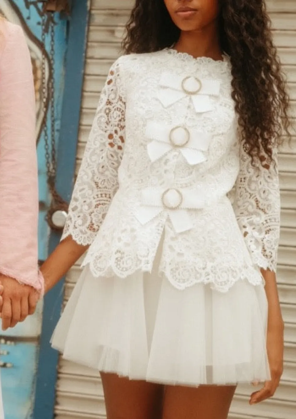 With experience at Vera Wang and adherents like Jennifer Lawrence, Lauren Wells is celebrated for uniting current sensibilities with traditional lines in her bridal collections. In each L. Wells gown, you’ll find modern expressions of classic femininity, exuding romantic touches, whimsical turns, and effortless grace. The Pinkie Skirt in Ivory delights in soft-as-can-be tulle, finished with a silk waistband and lining. We love it contrasted with something tailored, like the Millie Top in Ivory.