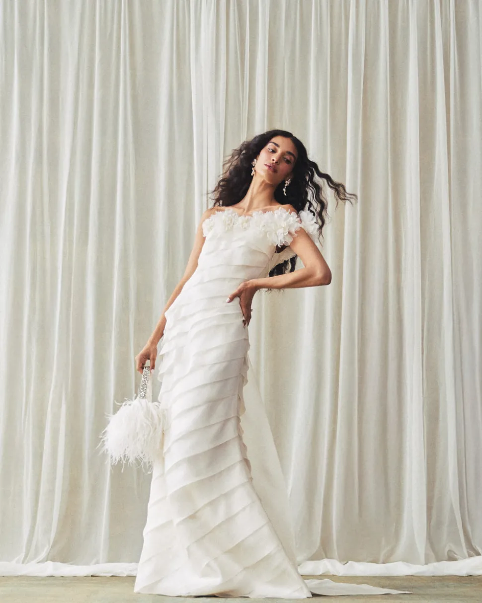 A graduate of the Savannah College of Design, award-winning Alexandra Pijut’s namesake line arrives from her studio in New York, offering luxe ready-to-wear pieces that distinguish themselves between femininity and practicality. Designed to stand out, the Piper Bucket Bag in Ivory with Feather Embellishment brings tactile beauty and elevated detail to evening looks.