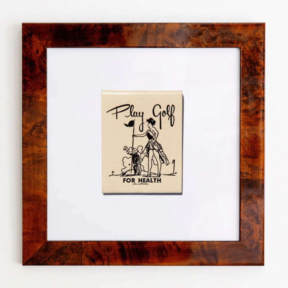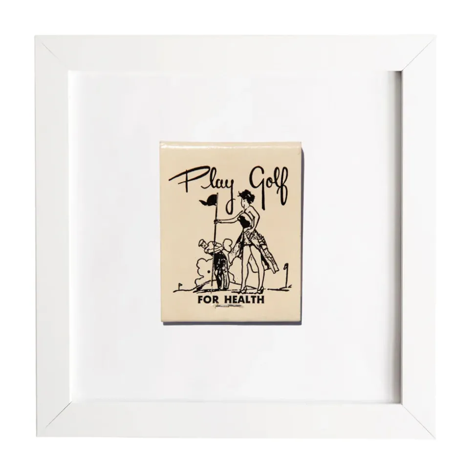 Handcrafted in the heart of Atlanta, Match South frames vintage matchbook images of professional sports teams, golf courses, restaurants, and hometown favorites. Ignited in 2015, the brand was created as a passion project to kindle love and support the restaurant industry—designing high-quality photographs of matchbooks from every corner of the country. Paying homage to vintage humorous illustrations, the Play Golf for Health frame makes for an effortless styling piece. Available in three colors, these frames have a white flat profile with clear acrylic for safe shipping.