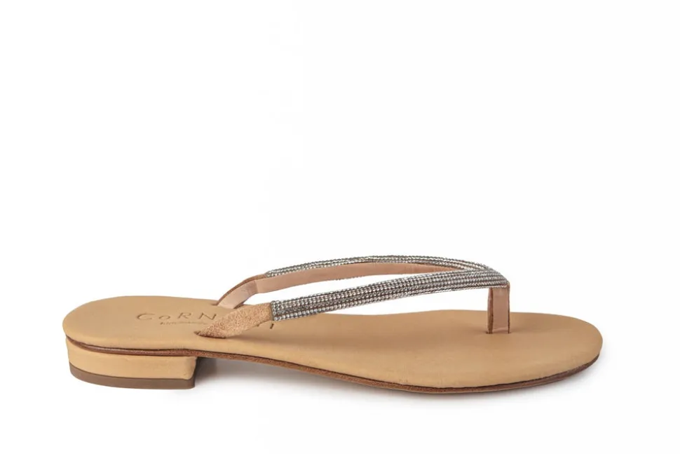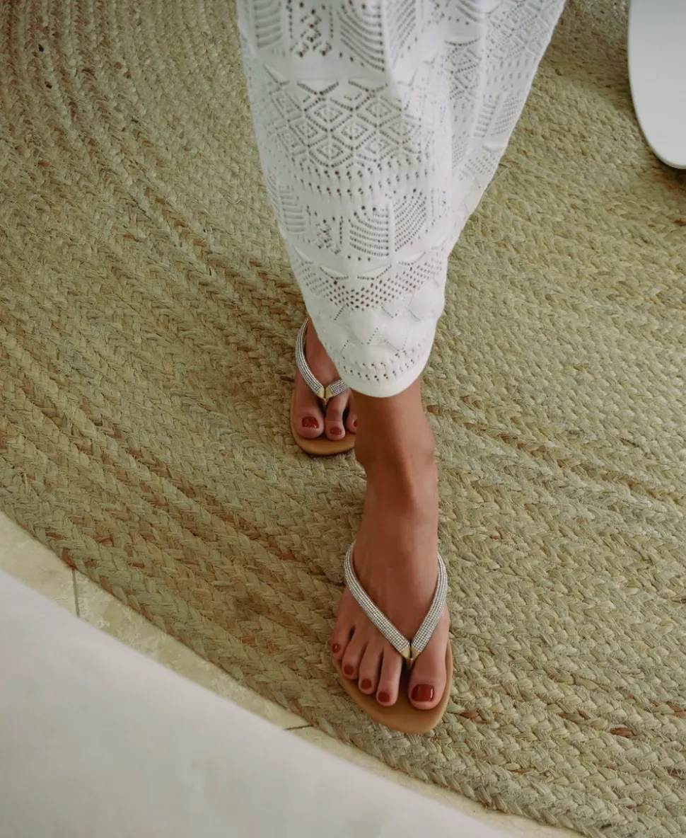 California-born designer Claudia Lucia Aragon dreamt up Cornetti while living and studying along the Amalfi Coast. Each sandal is meticulously crafted to last for long, well-loved summers—made from the highest quality and mindfully sourced leathers. Cornetti, which translates to “little bull horns,” is a symbol of luck that has been defined by Italian culture since ancient times. The Pogliano in Biscotto blends understated glamour with Mediterranean ease, featuring rhinestone-studded thong straps and a neutral hue for effortless styling.