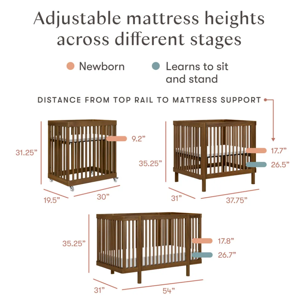 Assembled dimensions (crib mode): 54″ L x 30″ W x 35″ H