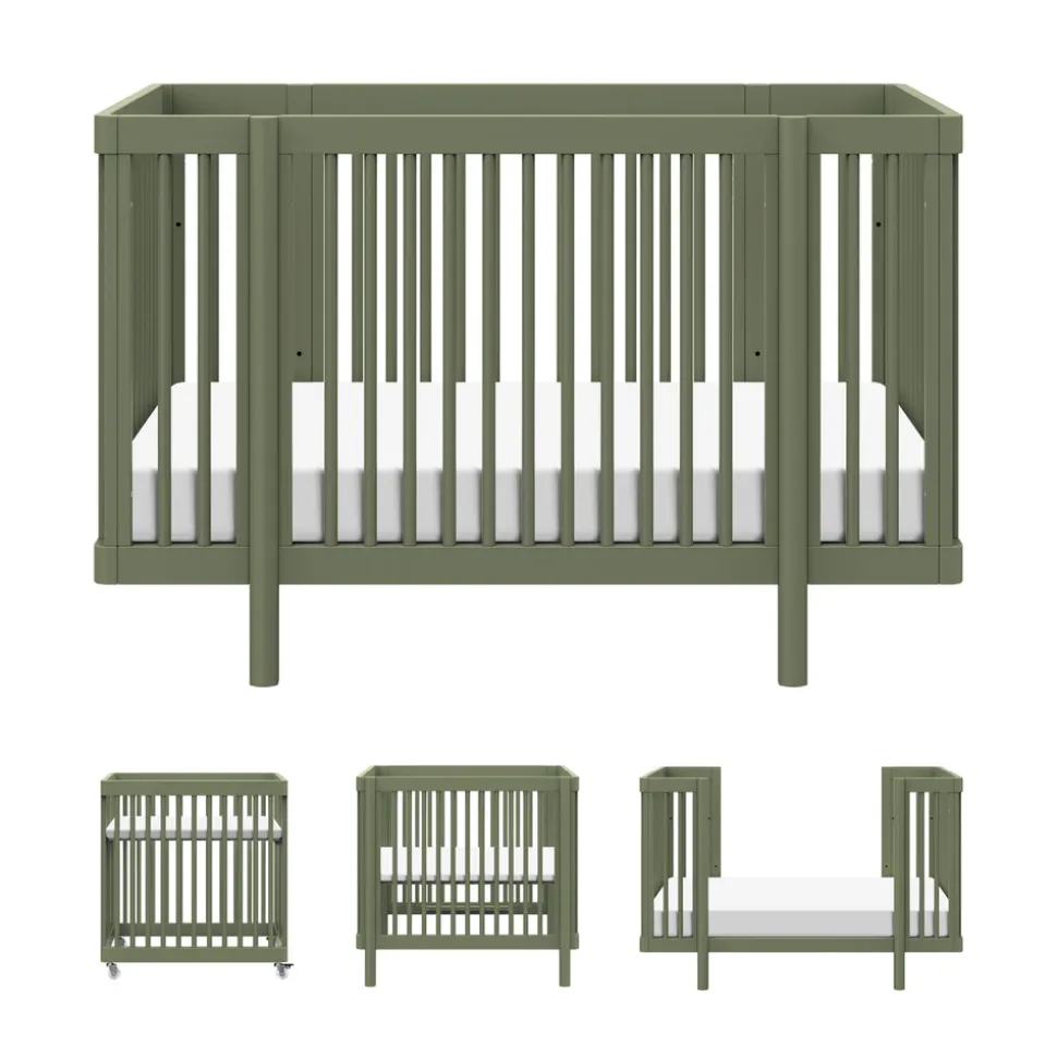 Designed in Los Angeles, babyletto creates stylish, modern nursery furniture with a focus on safety, sustainability, and intuitive design. For over a decade, the brand has empowered parents to craft spaces that reflect their values and individuality. The Pogo 8-in-1 Convertible Crib with All-Stages Conversion Kits in Olive offers exceptional versatility, transitioning from bassinet to midi size, standard crib, toddler bed, daybed, and junior bed—supporting every stage of growth. With curved corners, rounded spindles, and included conversion kits, this thoughtfully crafted piece brings modern elegance and adaptability to the nursery.