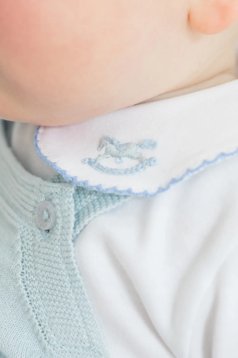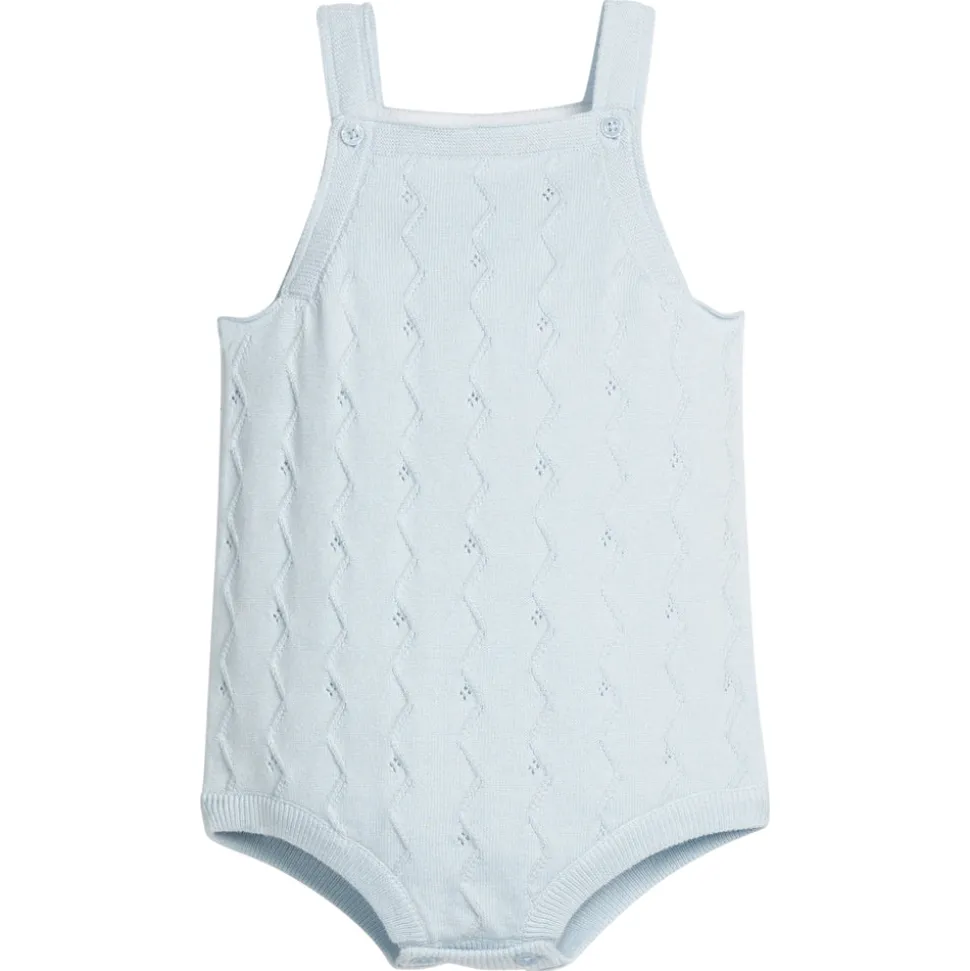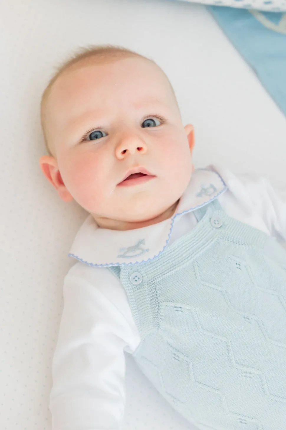 Shannon Latham founded Little English in 2004 with the belief that children should always be well-dressed. Employing hand-smocking, hand-embroidery, and the very best fabrics, Shannon and her daughter design timeless pieces that will be worn for generations to come. The Pointelle Knit Bubble in Light Blue is a darling new gift style for baby boys, crafted in soft cotton with a subtle pointelle knit pattern. Designed sleeveless for comfort and charm, it layers beautifully with the Peter Pan Picot Shirt or Long-Sleeve Pinpoint Shirt. Add a monogram for an extra-personal touch.