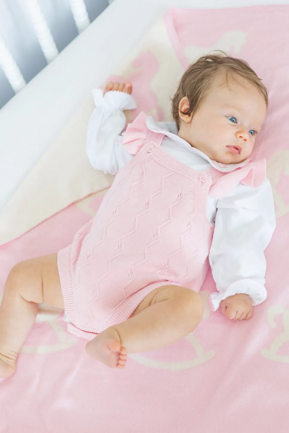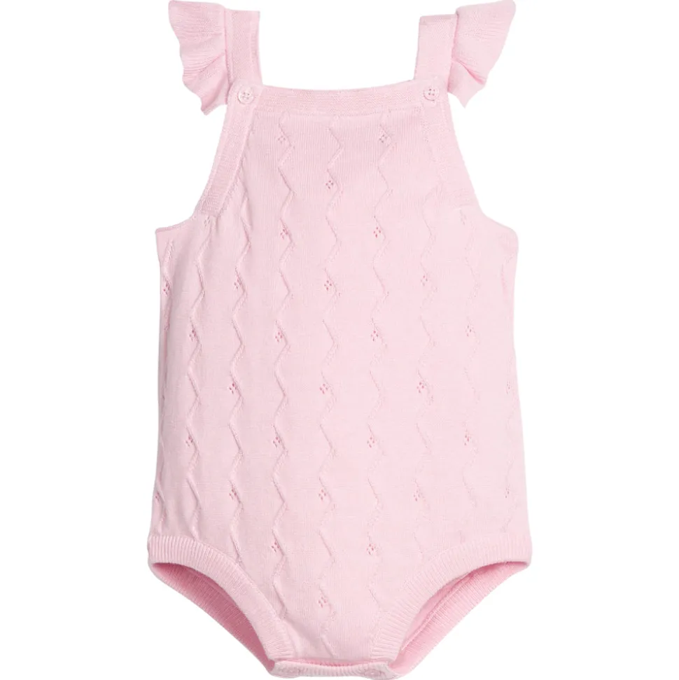 Shannon Latham founded Little English in 2004 with the belief that children should always be well-dressed. Employing hand-smocking, hand-embroidery, and the very best fabrics, Shannon and her daughter design timeless pieces that will be worn for generations to come. The Pointelle Knit Bubble in Light Pink is a darling new gift style for baby girls, crafted in soft cotton with a subtle pointelle knit pattern. Designed sleeveless with flutter sleeves for added charm, it layers beautifully with the Peter Pan Picot Blouse or Long-Sleeve Pinpoint Blouse. Add a monogram for an extra-personal touch.