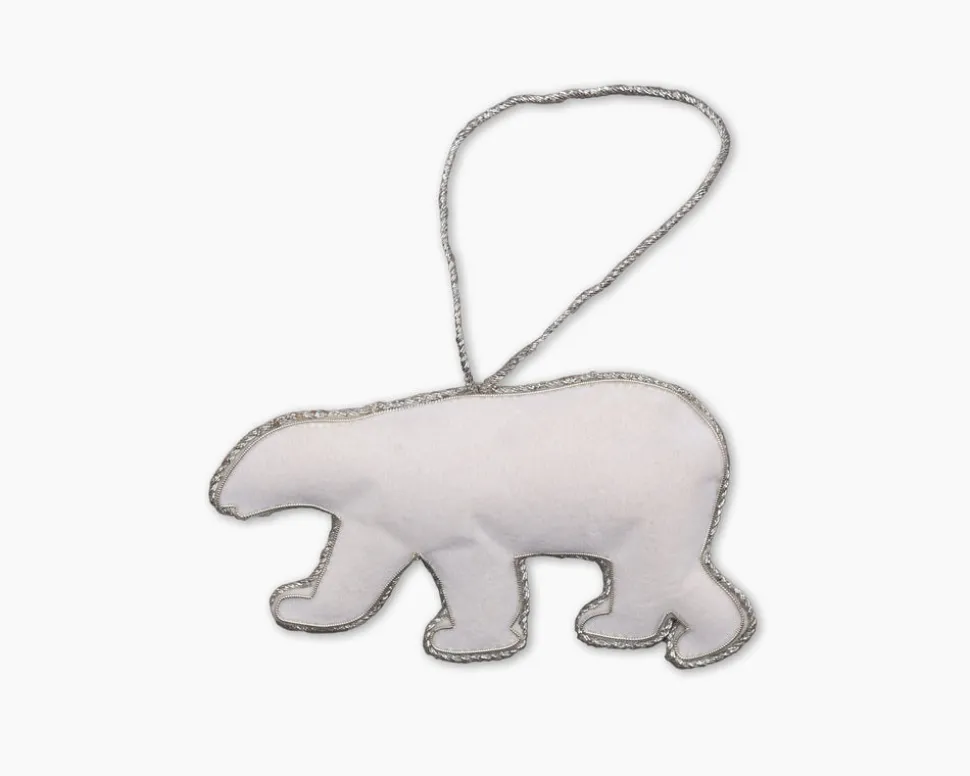 Founded in 2012, Henry Handwork brings joy to the everyday with handmade textiles for the home. Placing tradition and quality at the forefront, the brand resurrects the fading craft of hand-embroidery and needlework, embracing the heritage of finely-wrought European linens. The Polar Bear Ornament is embellished with beads, metallic thread and hand-stitched on velveteen fabric. Handmade with care, this wintery pal adds a cool touch of playfulness to any tree.
