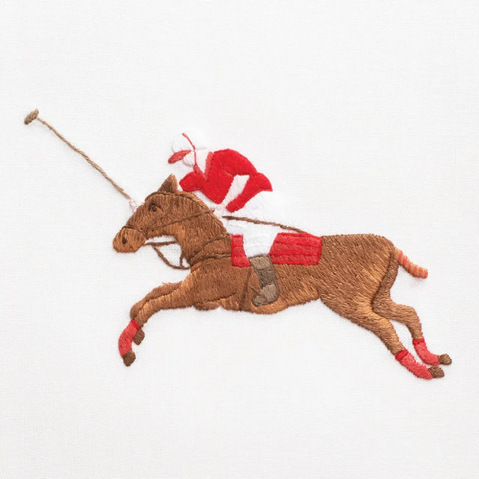 Founded in 2012, Henry Handwork brings joy to the everyday with handmade textiles for the home. Placing tradition and quality at the forefront, the brand resurrects the fading craft of hand-embroidery and needlework, embracing the heritage of finely-wrought European linens. The Polo Match Hand Towel is a white, hand-embroidered piece that is finished and hemstitched by hand. This classic sport design adds a charming touch to the home.