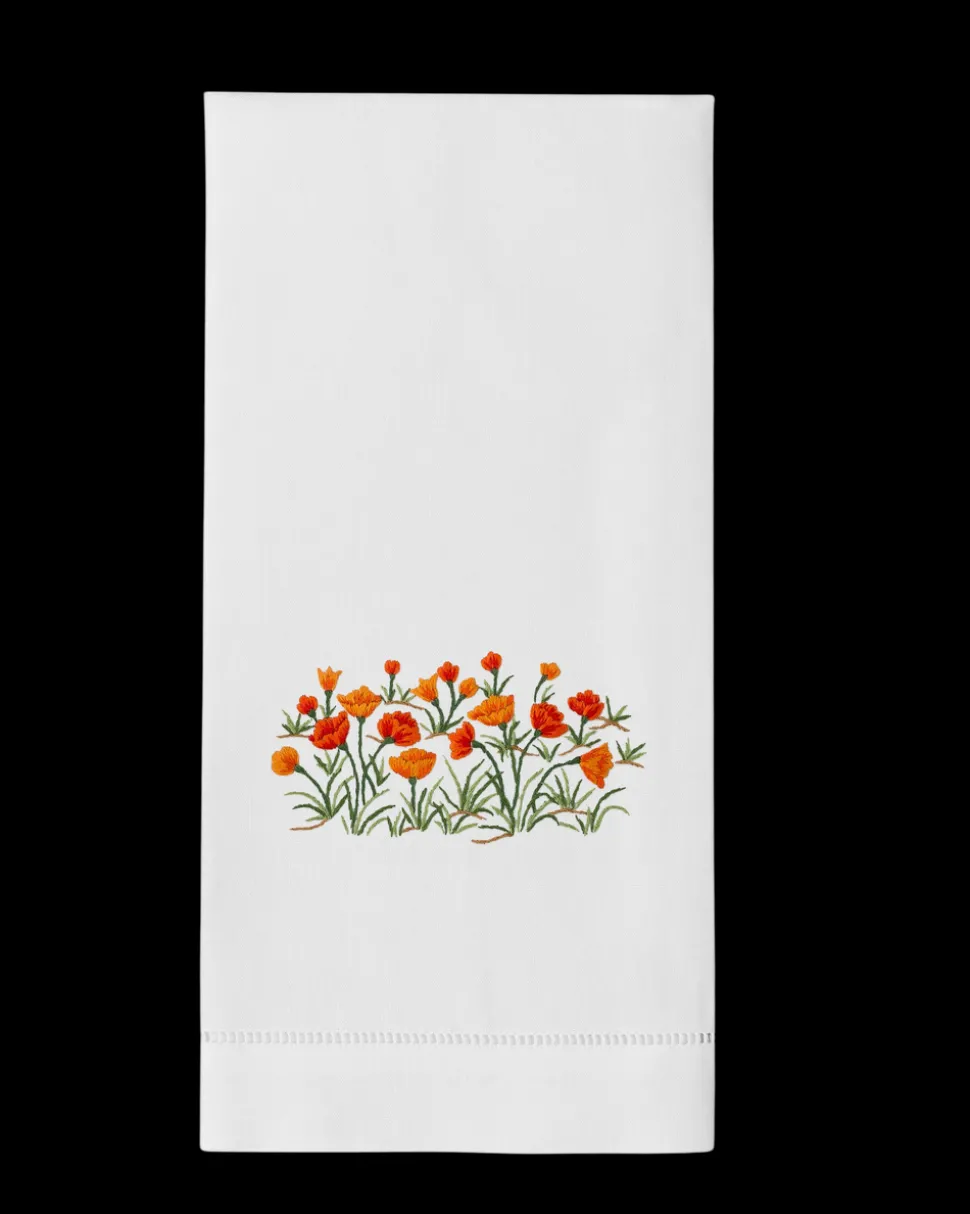 Founded in 2012, Henry Handwork brings joy to the everyday with handmade textiles for the home. Placing tradition and quality at the forefront, the brand resurrects the fading craft of hand-embroidery and needlework, embracing the heritage of finely-wrought European linens. The Poppies Hand Towel is a white, hand-embroidered piece that is finished and hemstitched by hand. This floral design adds a fresh, happy touch to the home.