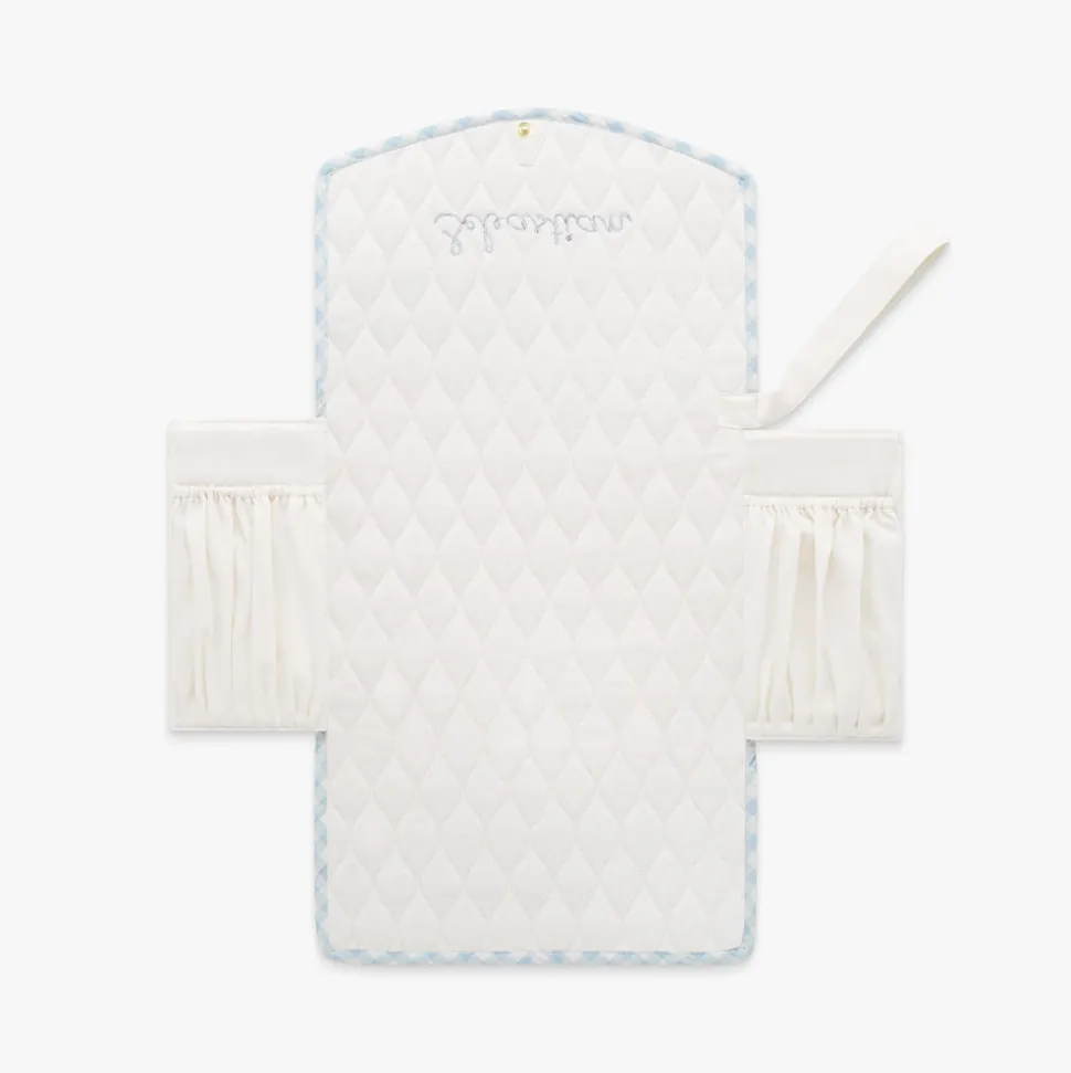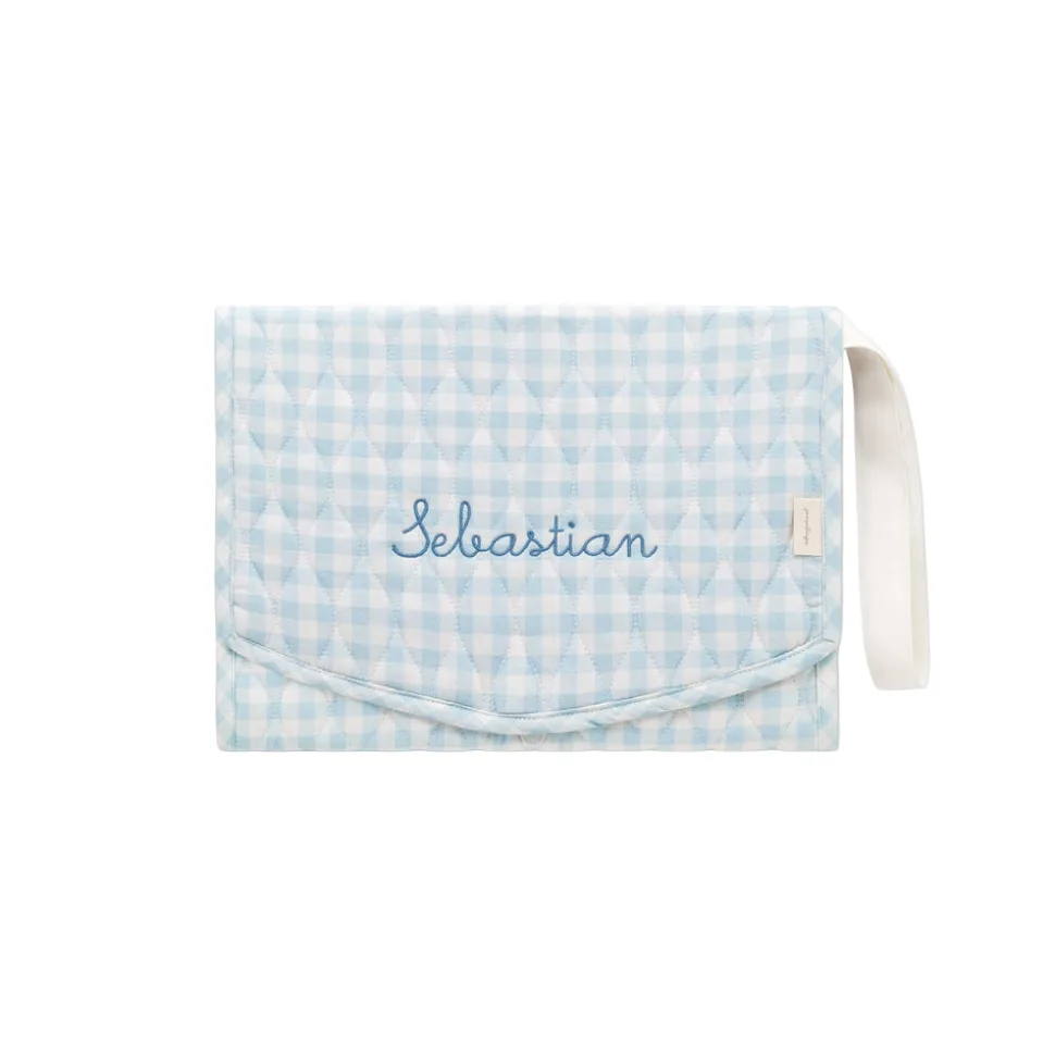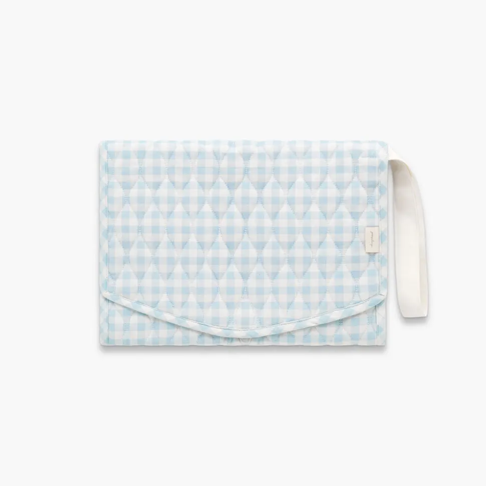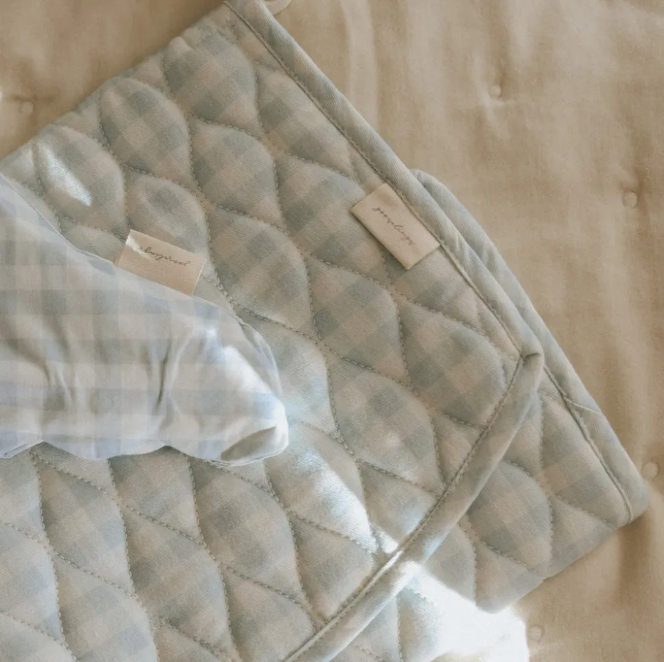 Inspired by Hygge—a Scandinavian concept that emphasizes the innate contentment arising from a cozy and comfortable atmosphere—Gooselings offers serene essentials for children and babies that bring stylish serenity to any space they touch. The Portable Changing Pad in Blue Gingham is designed for ease and practicality, offering a clean, compact space for diaper changes wherever the day takes you. With its waterproof surface, elastic storage pockets, and classic gingham design, it brings both function and charm to life on the go.