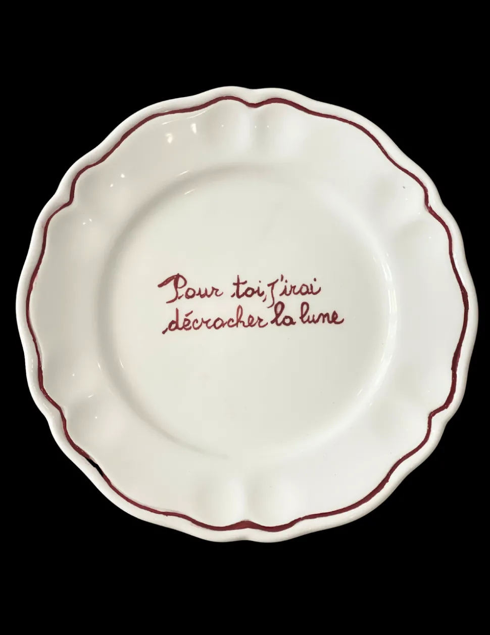 London-based Sveva Clavarino, whose Wellness Reporter platform offers everything from luxury trips to natural skincare products, curates Sveva’s Home from her experiences traveling the globe. The refinement of her handmade, artisanal ceramics and tabletop items is balanced by cheeky expressions, guaranteed to delight your guests. Individually personalized, thePour Toi, J’irais Décrocher La Lune Scalloped Plate, Set of 6 lays the table with a wink and a nod, en Français, to one of the great romantic statements.