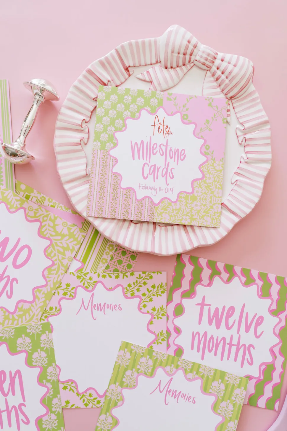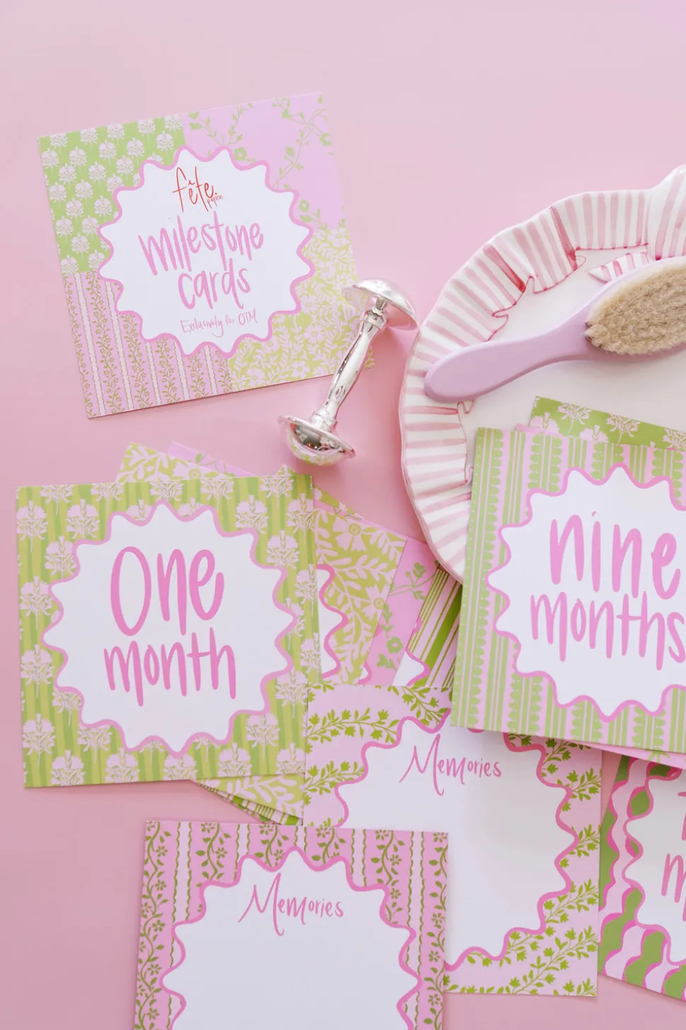 Drawing on a lifelong passion for hospitality and design, founder Mahaley Aguayo transforms everyday moments into extraordinary celebrations through Fête Papier’s curated paper goods and party accessories. With a blend of Southern warmth and modern sophistication, each design invites effortless charm and creates memories destined to be cherished. The Precious Pinks Milestone Cards offer a sweet and sentimental way to celebrate a baby’s first year. With twelve hand-designed cards and space on the back to record special memories, this keepsake set makes a heartfelt gift for any mom-to-be.