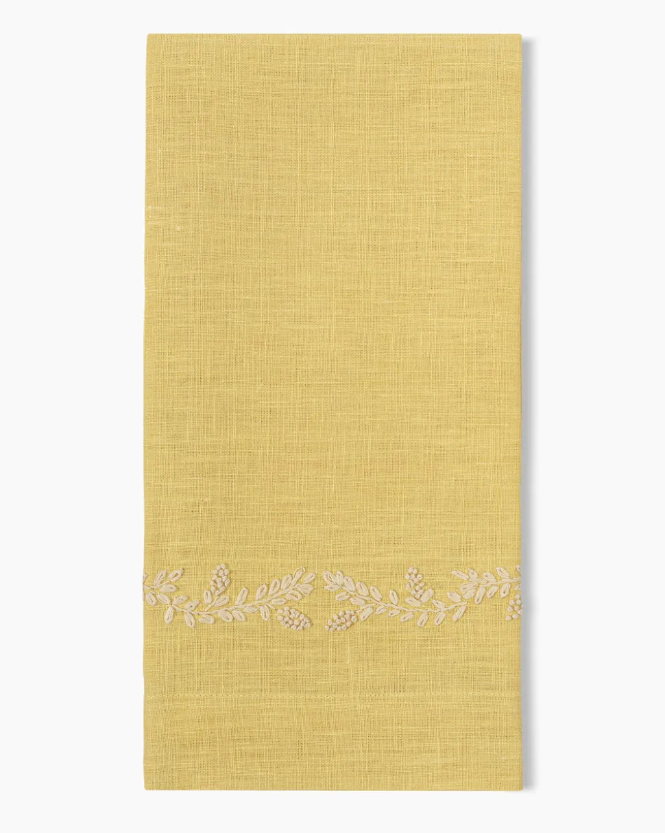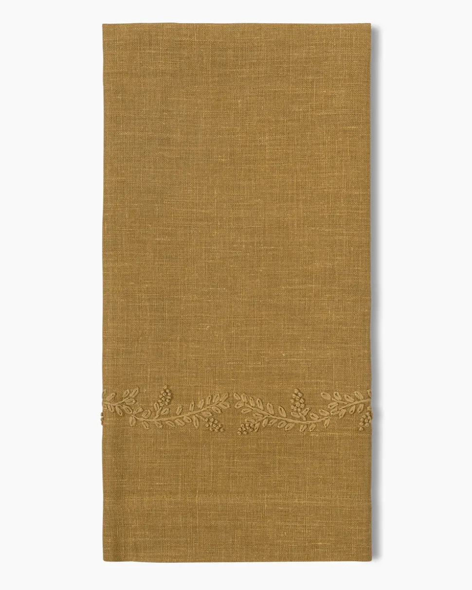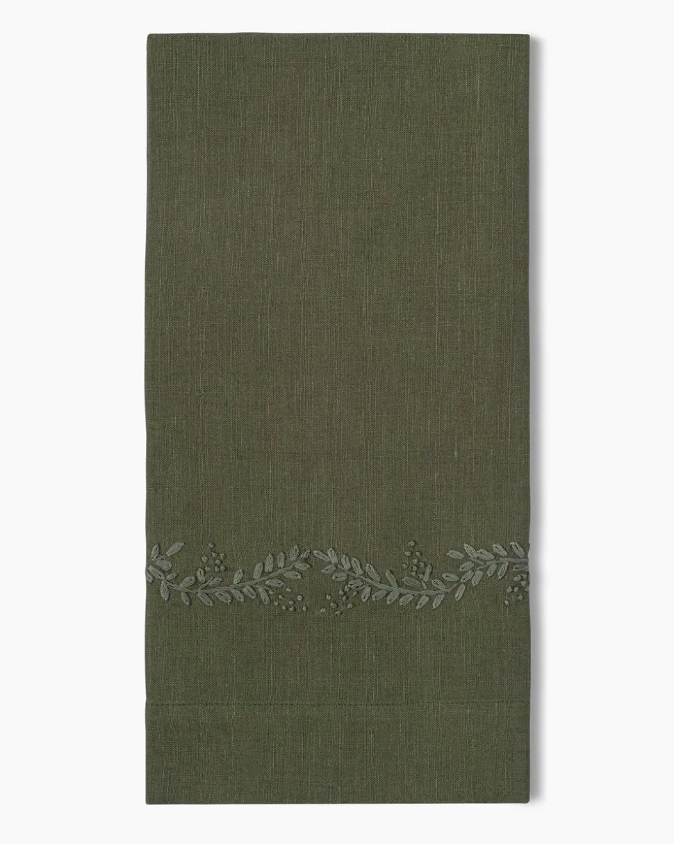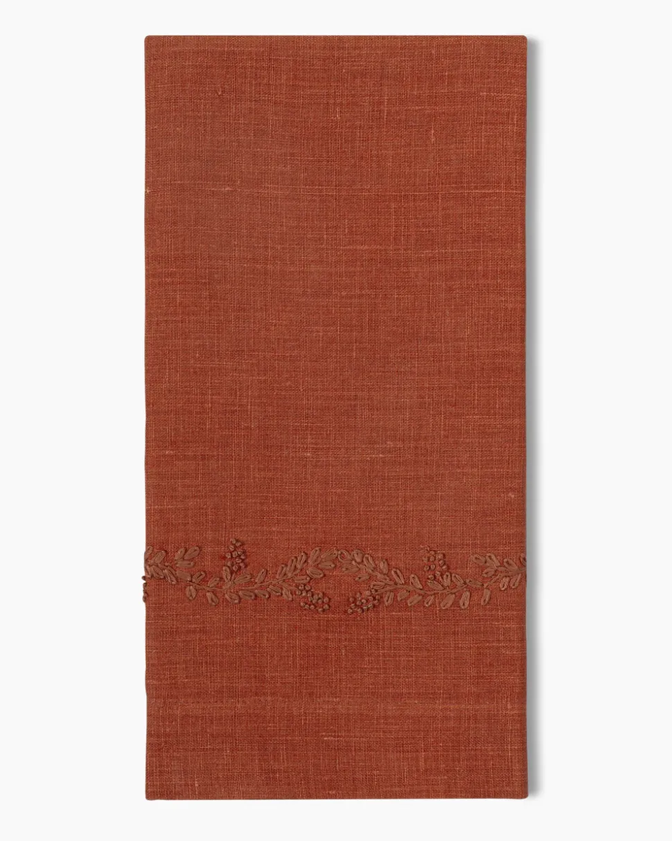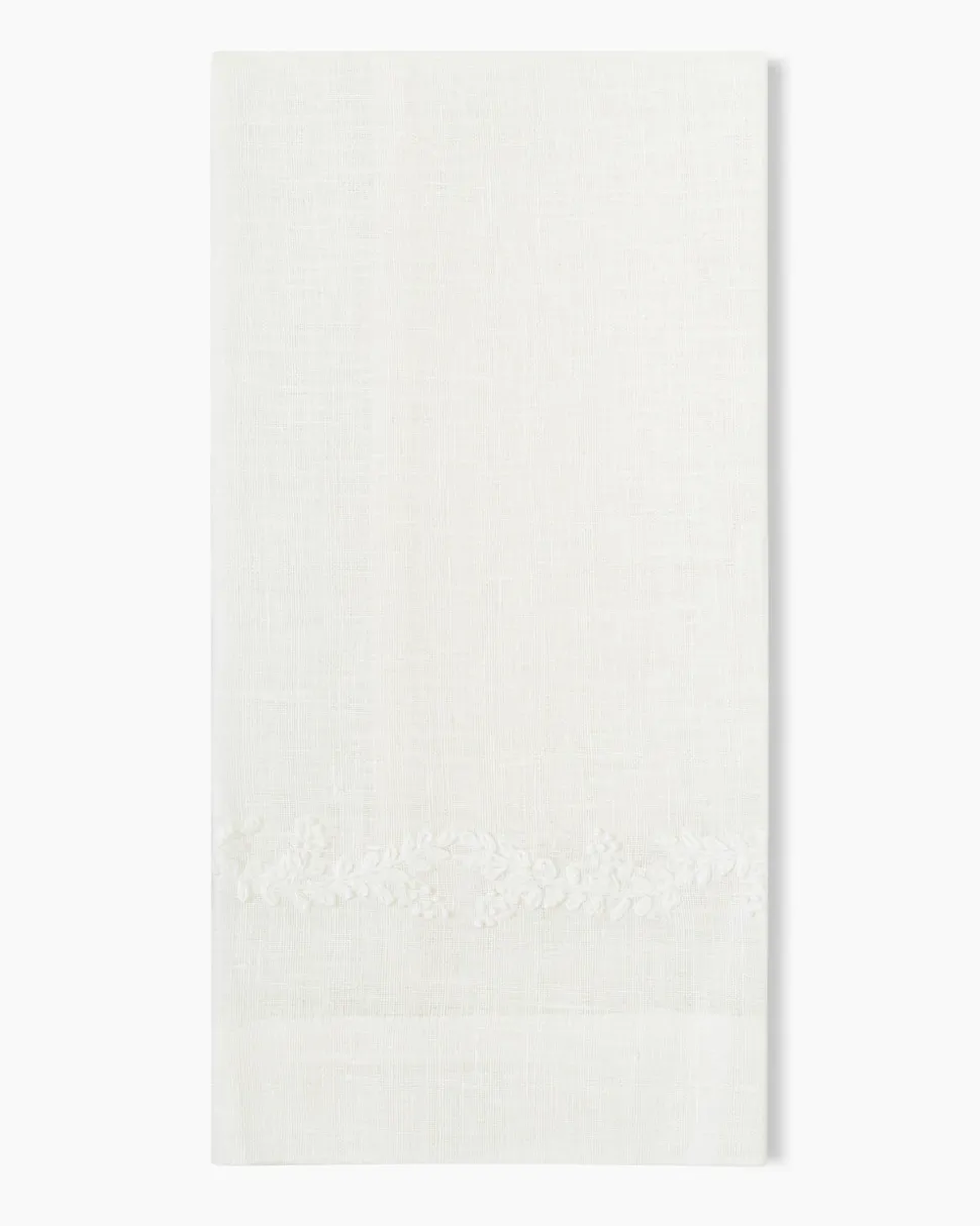 Founded in 2012, Henry Handwork brings joy to the everyday with handmade textiles for the home. Placing tradition and quality at the forefront, the brand resurrects the fading craft of hand-embroidery and needlework, embracing the heritage of finely-wrought European linens. The Prism Vine Linen Hand Towel in 13 Colors is a hand-embroidered, monochromatic piece that is finished and hemstitched by hand that will add Provincial charm to any home.