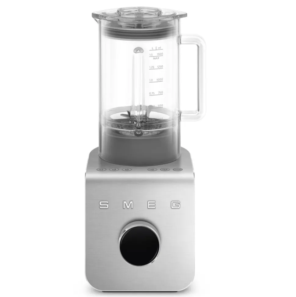 For over 70 years, SMEG kitchen appliances have gained renown for their distinctive design and exceptional functionality, earning their motto ‘Technology with style.’ The Northern Italian firm’s combination of retro aesthetics with cutting-edge technology—in everything from toasters to coffee machines to their signature fridge—sets kitchens apart the world over. The Professional Blender BLC01 in Matte Black is a sleek, high performance must-have that combines different textures of ingredients, enabling excellent results. Includes nine manual speed levels and pulse functions for a wide range of preparations.