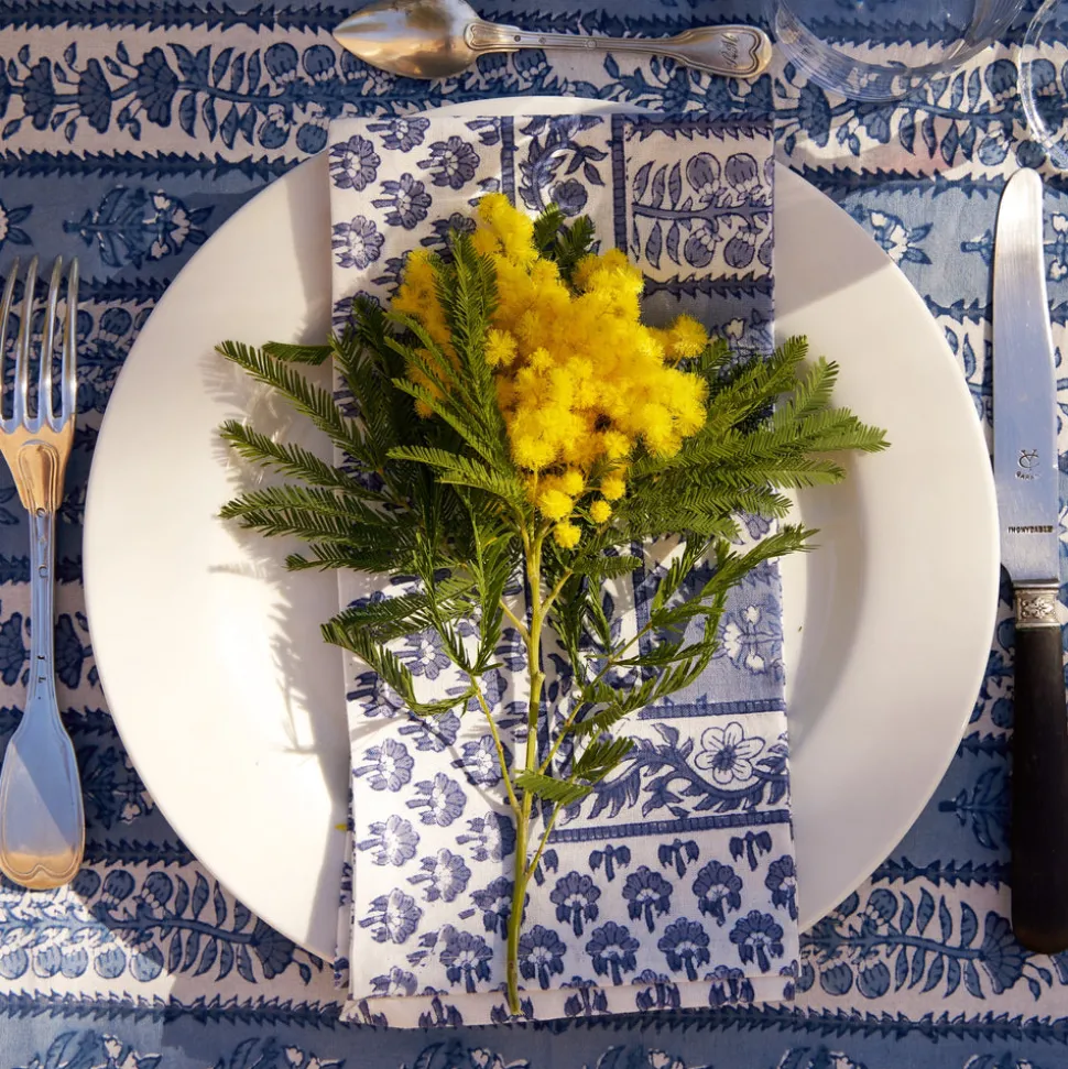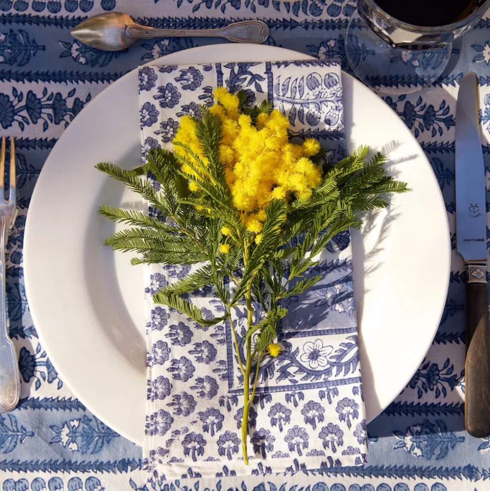 Idyllic landscapes, sumptuous colors, and the vibrant beauty of Southern France describes Couleur Nature. This brand of hand-painted table linens aims to bring a Provençal sense of effortlessness, rich culture, and joie de vivre to your life and home—no matter where you live. Featuring delicately colored botanical designs that evoke the sun-kissed splendor of Provence, the Provence Avignon Napkins in Blue & Marine, Set of 6 is named after the French city famed for its rich cultural legacy. Whether you’re dining indoors or out, these linens add a touch of pastoral French elegance to any meal, featuring a pattern hand-printed by skilled artisans using a time-honored technique, which results in a singular piece of craftsmanship.