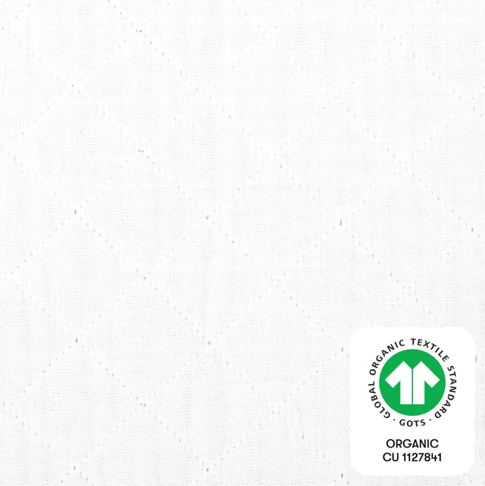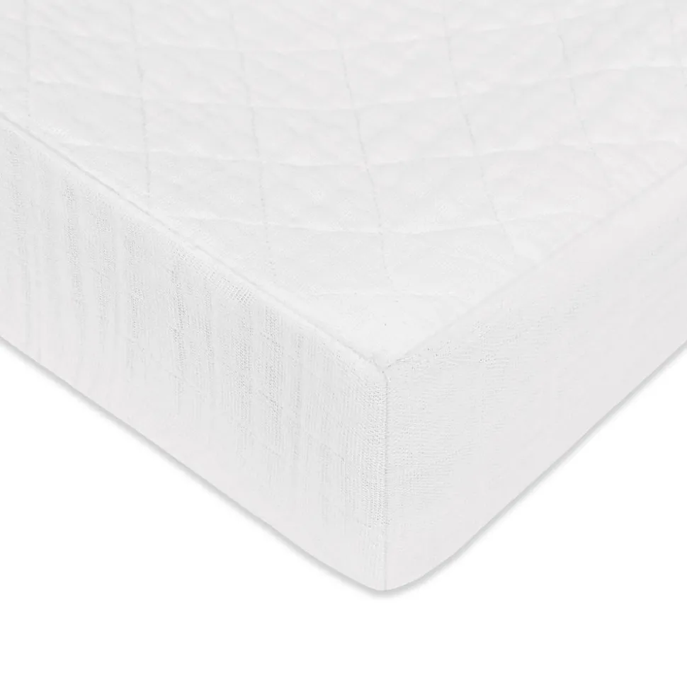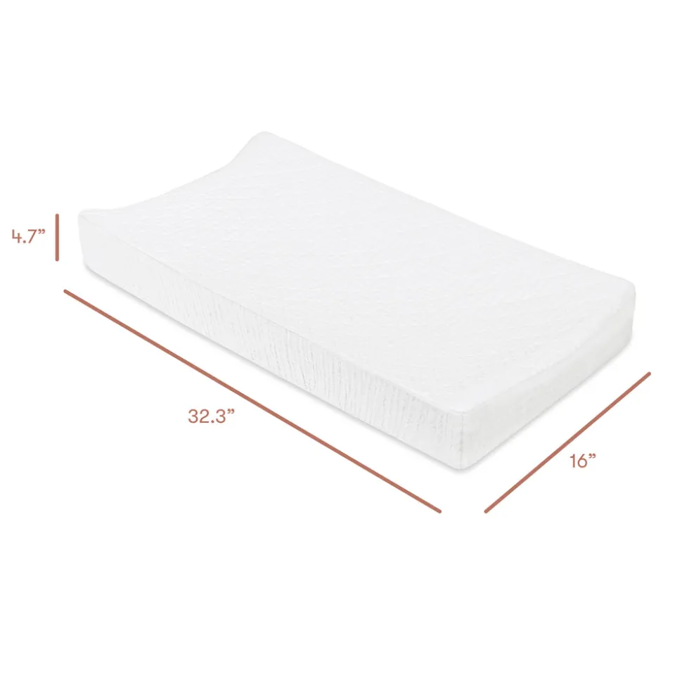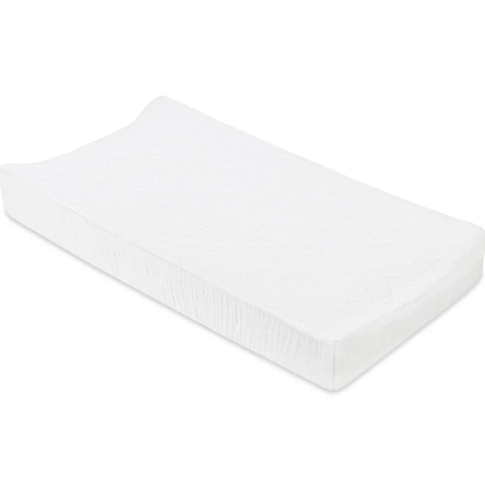 White. 100% GOTS-certified organic muslin cotton. Lightly quilted for extra softness. Elasticized edges for a secure fit. Fits standard changing pads.