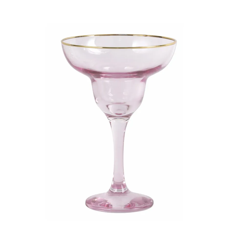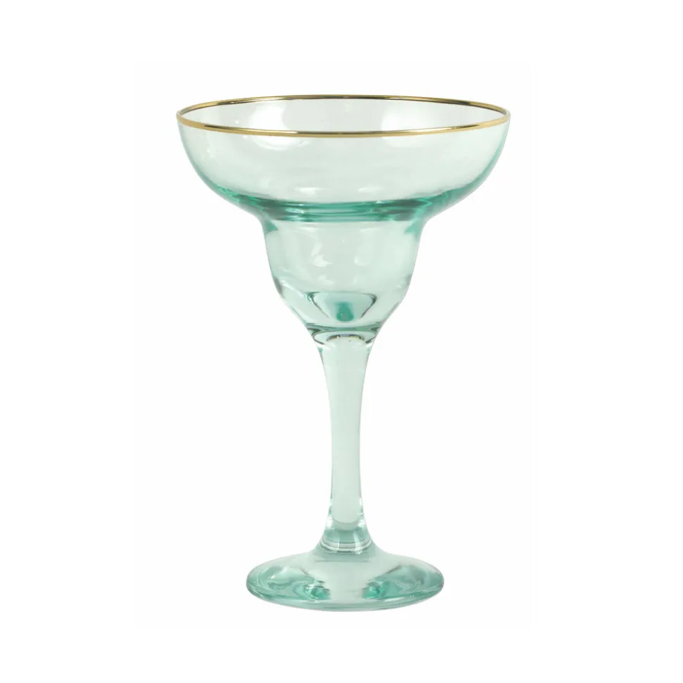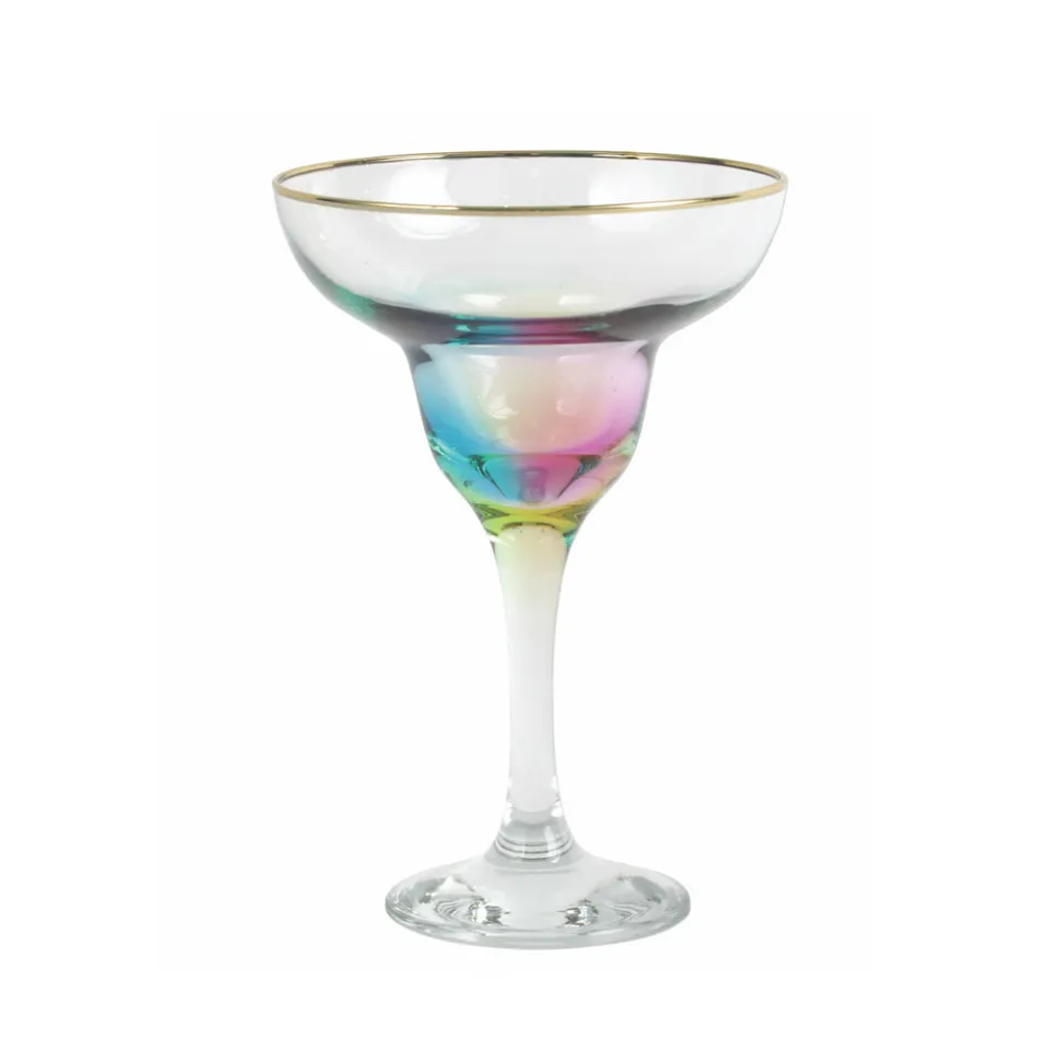 Inspired by Italian lifestyle, history, and culture, VIETRI uses the highest-quality clays from the soil of Italy’s countryside to produce beautiful, everyday items for your home. Hand-painted details, quality glazes, and fine craftsmanship help you savor the moments spent at your table and the company of those who join it. The Rainbow Margarita Glass adds sparkle to any setting with a gilded gold rim and varied colored glass that refracts light.