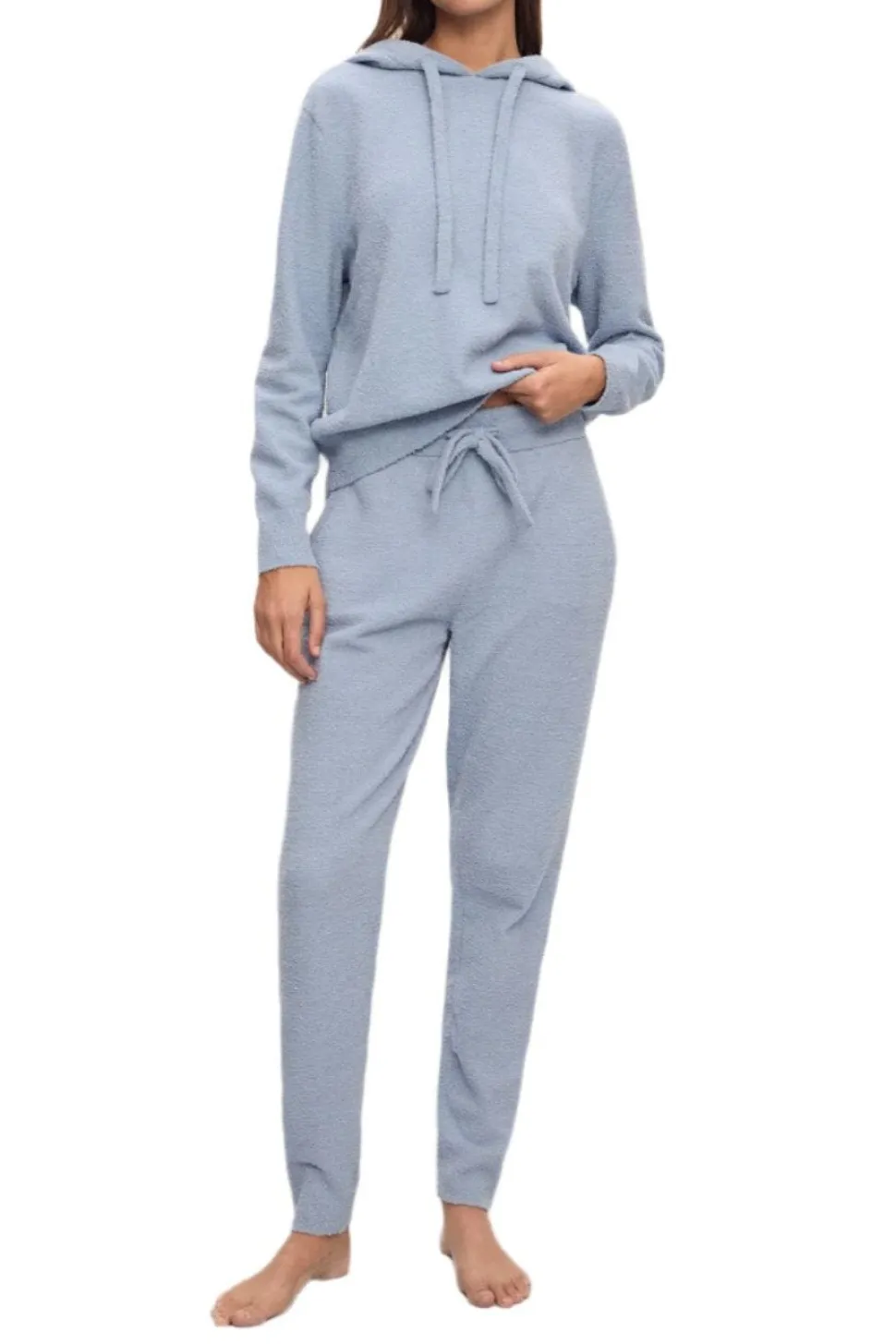 In 1996, Eberjey co-founders Ali and Mariela understood the visceral desire for beautiful, functional sleepwear that supported sleep and individual style. At last, pajamas can be sensual, comfortable, tailored, and effortless. The Recycled Boucle Jogger in Wedgewood Blue features a mid-rise fit with a ribbed elastic waistband, wide drawstring, slant pockets, a back patch pocket, and a relaxed, comfortable fit. Pairs like a dream with the matching Boucle Hoodie.
