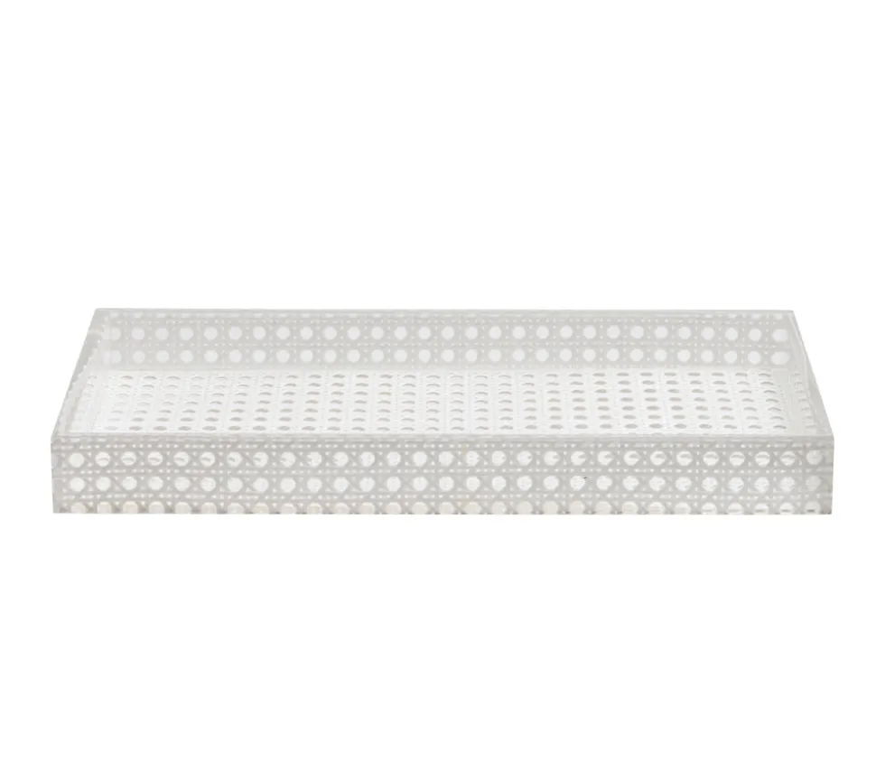 Kim Seybert designs artisan-made tabletop decor and luxury home accessories. Create a well-dressed dining look with the brand’s range of elegant tableware, placemats, runners, chargers, plates, napkins, flatware, and more. The Reed Vanity Tray in White features the signature reed pattern with a modern twist, reimagined as a serving tray. A hand-poured glossed finish prepares this smooth white wicker cane design for endless entertaining. Make this your style for all seasons paired with the Daphne Glassware.