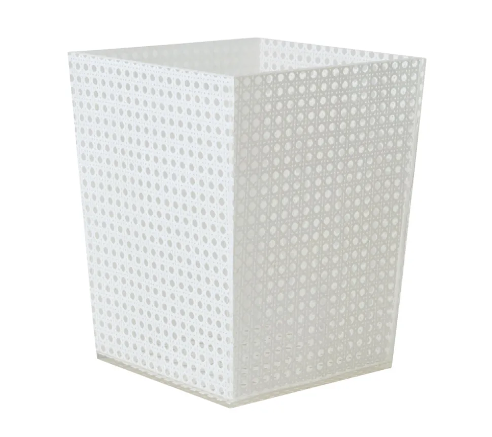 Kim Seybert designs artisan-made tabletop decor and luxury home accessories. Create a well-dressed dining look with the brand’s range of elegant tableware, placemats, runners, chargers, plates, napkins, flatware, and more. The Reed Waste Basket in White features the signature reed pattern with a modern twist, reimagined. A hand-poured glossed finish prepares this smooth wicker cane design. It looks chic as a standalone or complemented by the matching vanity tray, soap pump, and tissue box.