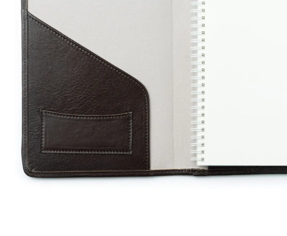 Traditional full-grain leather. 144-lined perforated pages. Refills are available to purchase.