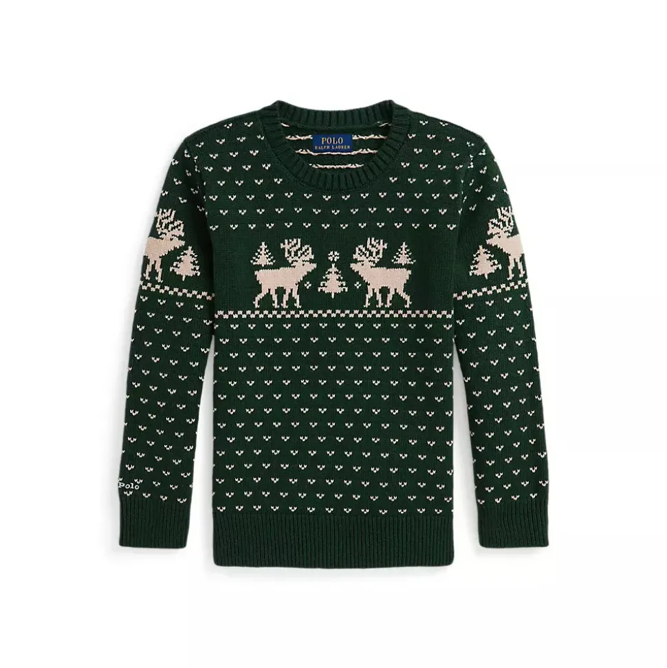 Classic designs for their arrival and all the “firsts” to follow, from organic cotton onesies to iconic Polo Shirts and playful sets. Discover timeless essentials and thoughtful gifts to celebrate every milestone. The Reindeer-Intarsia Cotton-Blend Sweater is a cozy seasonal favorite, featuring a heritage-inspired knit of pine trees and reindeer crafted in a soft cotton blend with wool for warmth and texture. A subtle embroidered Polo logo above the cuff adds a signature touch.