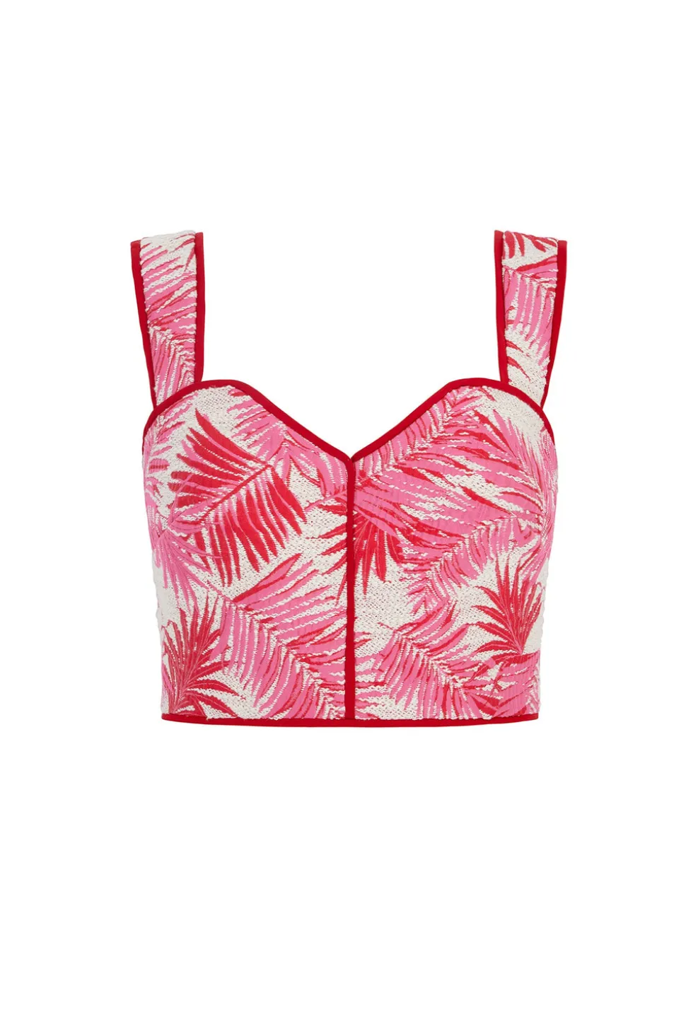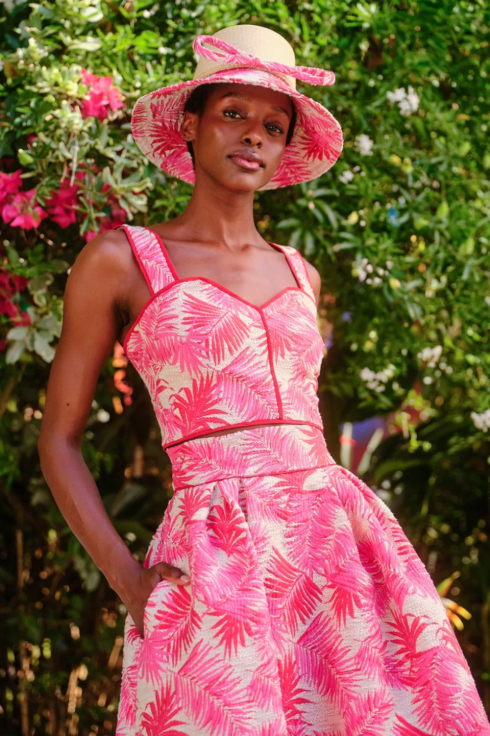 Since 2006, British designer Suzannah Crabb has been creating high-luxury womenswear pieces. Each piece is sustainably made, flawlessly crafted, ultra-flattering, and an excellent choice for all your special occasions, like this beautiful Remy Structured Bodice Top Palm Jacquard. This top is made from the most divine Italian palm leaf structured cotton jacquard. Fully lined with pure silk satin with a center back zip, this classic silhouette pairs well with anything. Style is together with the coordinating Remy Skirt and Remy Jacket.