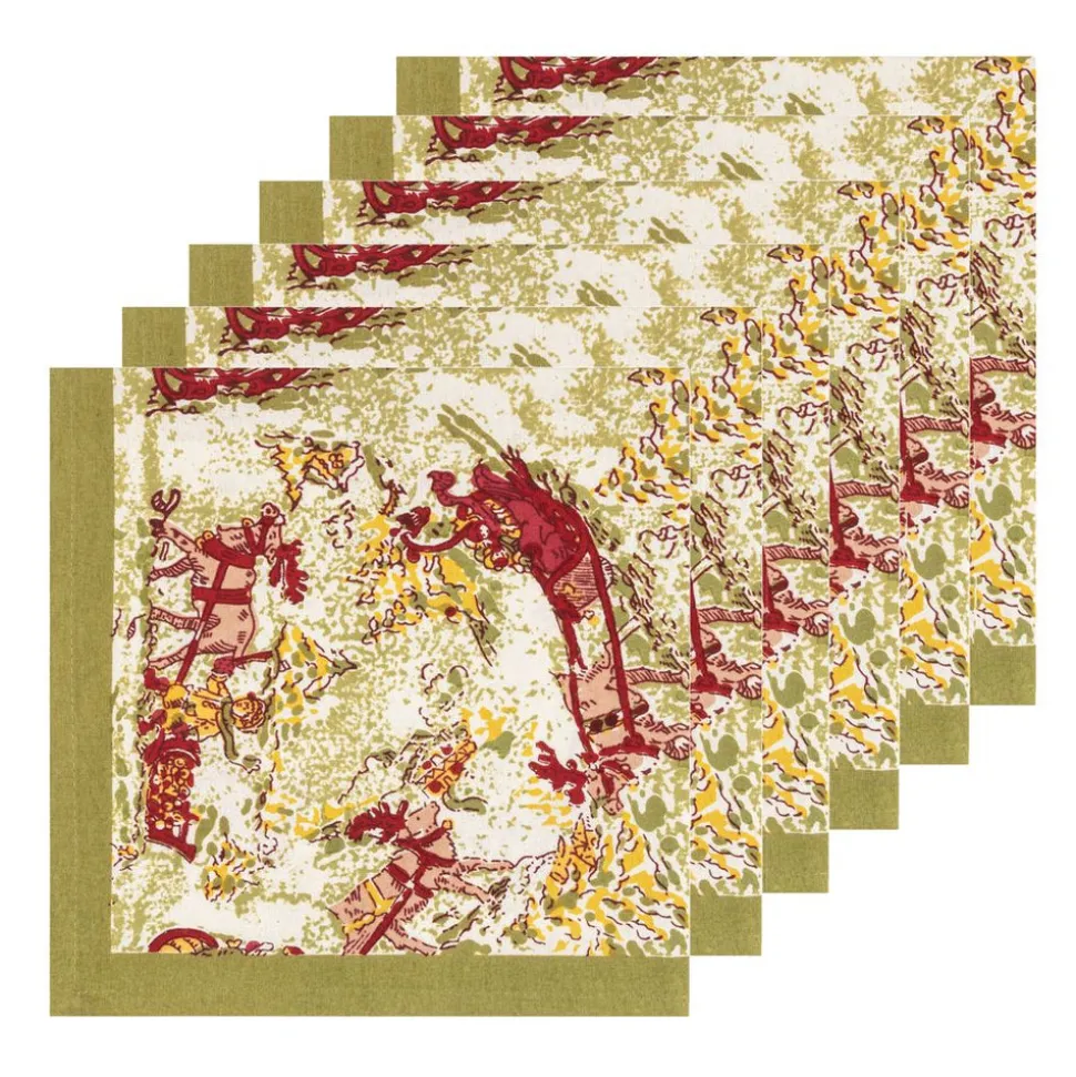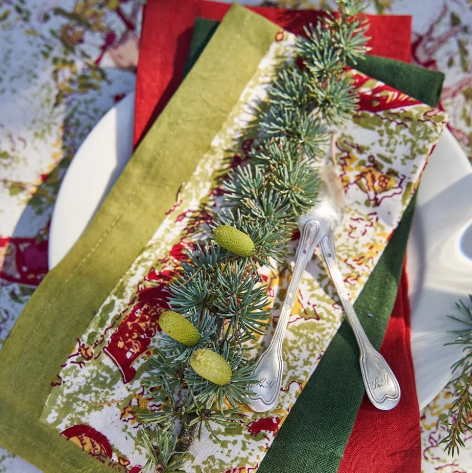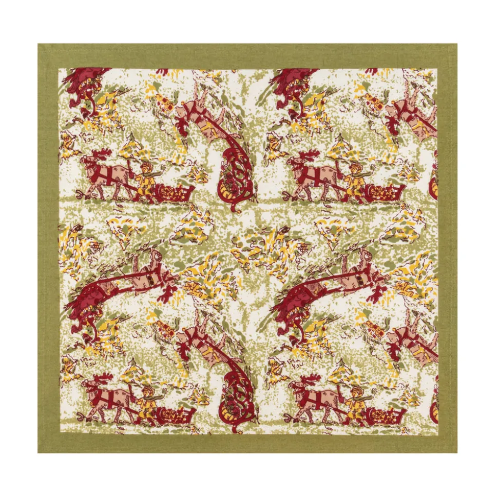 Idyllic landscapes, sumptuous colors, and the vibrant beauty of Southern France describes Couleur Nature. This brand of hand-painted table linens aims to bring a Provençal sense of effortlessness, rich culture, and joie de vivre to your life and home—no matter where you live. Embrace the magic of wintry landscapes and a brisk chill in the air with our Renne Reindeer Napkins in Red & Green, Set of 6. This charming pattern reveals enchanting reindeer and playful children sledding through snow will give your table a jovial look for the winter season. Fine French table linens, hand-printed, these napkin transforms the ordinary meal into a dining experience and makes guests feel cared for, adding an extra element of polish to any occasion. Designed exclusively for Couleur Nature by Parisian artist Bruno Lamy.