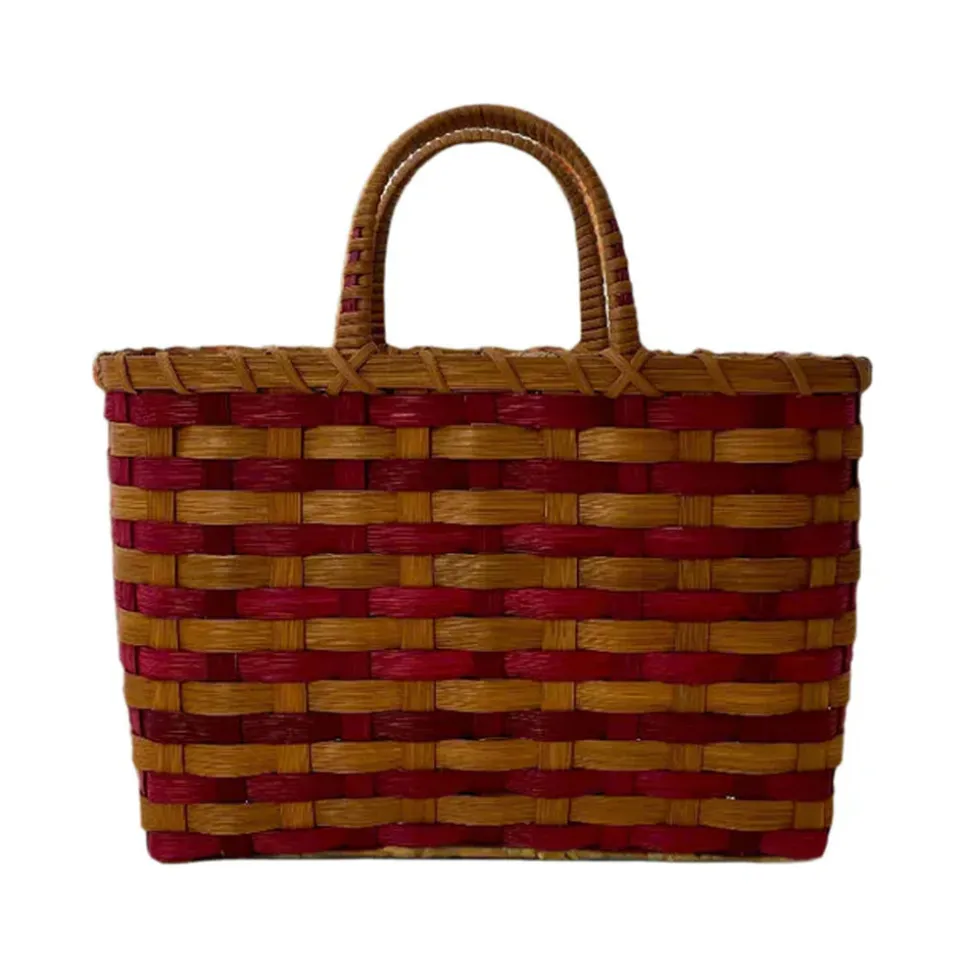 Underwater Weaving Studio is an American basket atelier founded by Erin Pollard, rooted in elevated craftsmanship. Specializing in heirloom quality rattan baskets that elevate the every day, each handmade design is made to order by generations dedicated to the timeless preservation of woven utility for a down-to-earth contemporary lifestyle. Designed for time travelers and style seekers alike, the Retro-Travel Tote in Burgundy & Brown blends nostalgic charm with everyday function. Intricately handwoven from natural rattan fibers, its playful palette and boxy silhouette evoke a vintage spirit that feels refreshingly modern.