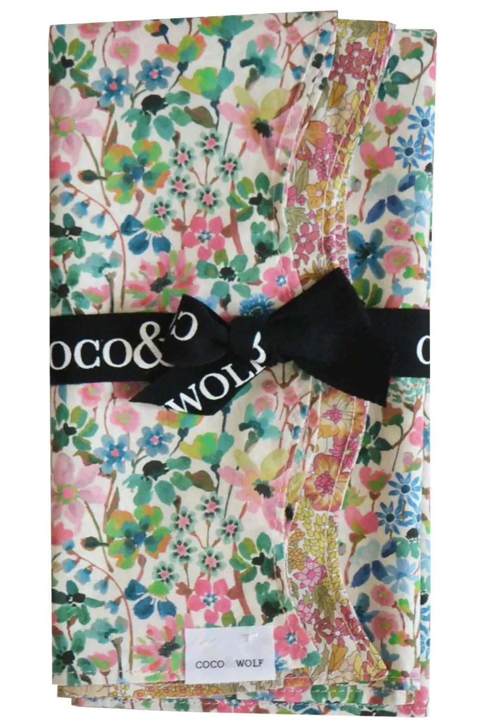 Coco & Wolf is a luxury bedding and lifestyle brand using premium Liberty fabric. Handmade in a Somerset, this collection of clean and contemporary homeware and table linens create stylish heirlooms for years to come. The Reversible Wavy Napkin Set Made With Liberty Fabric in Dreams Of Summer features two beautiful and complementary prints finished with wavy edges. A dining essential, this napkin set will add an artful look to any table.