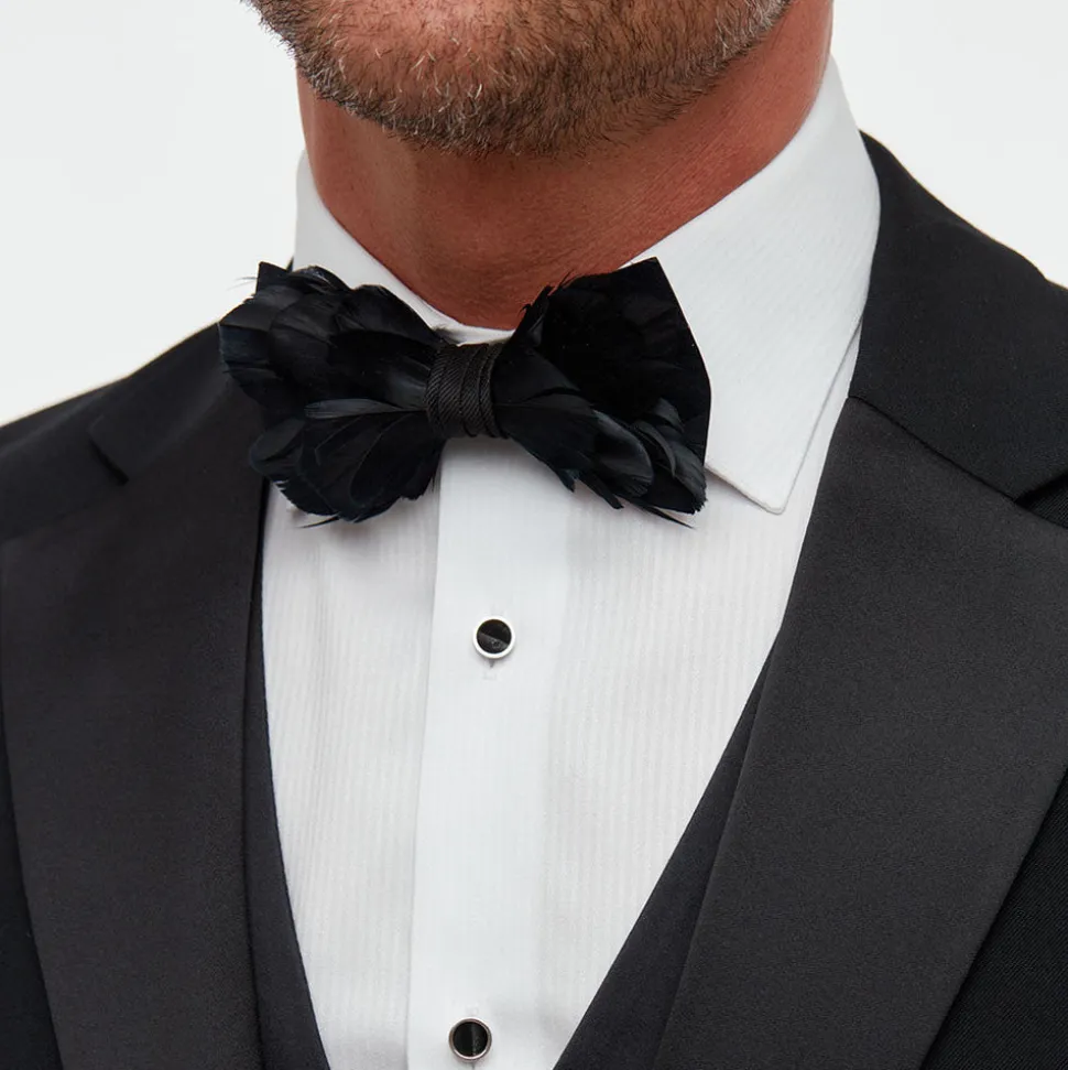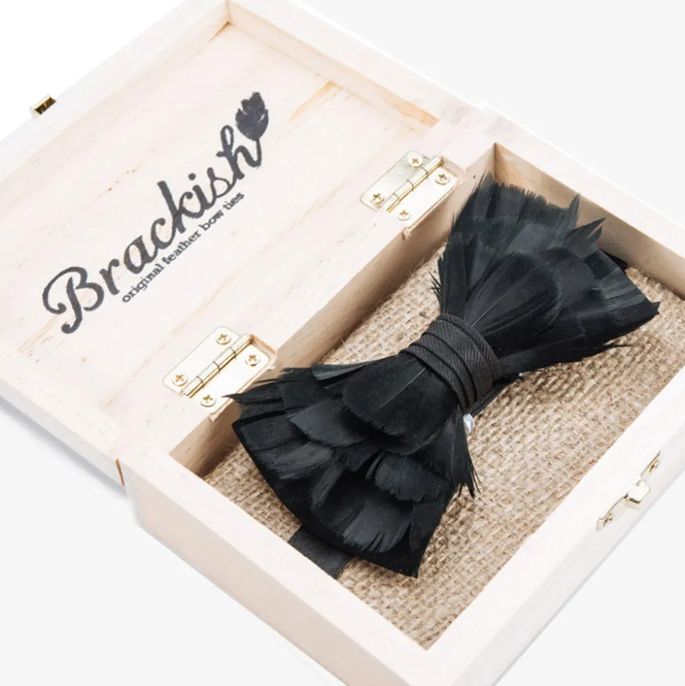 Brackish began with one feather bow tie designed by Ben Ross and gifted to his groomsman, Jeff Plotner. Since its inception, the brand has blossomed into a full line of men’s and women’s accessories designed and handcrafted in Charleston, South Carolina with each piece focused on honoring the beauty found in nature. The Rice Bow Tie is the black counterpart to the all white Carew style. Named after Carew Rice, a South Carolina artist who used black and white silhouettes to imitate the world around him. This piece is made from black goose feathers.